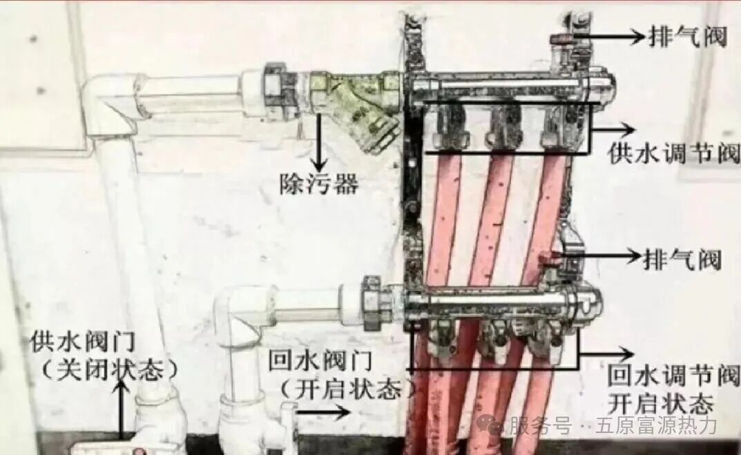 (1)关闭采暖的总供回水阀门以及地暖分集水器各环路调节阀