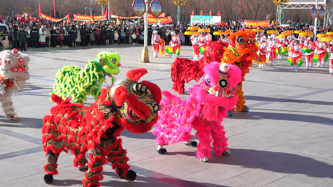 开幕式上,伴着铿锵有力的鼓点,“巳狮如意”率先登场,数只雄狮腾挪扑跃,彩毛抖擞,以矫健之姿演绎新春活力。随后“金蟒舞春”精彩上演,秧歌队伍彩绸飞扬,喜庆氛围瞬间拉满,赢得观众阵阵喝彩。