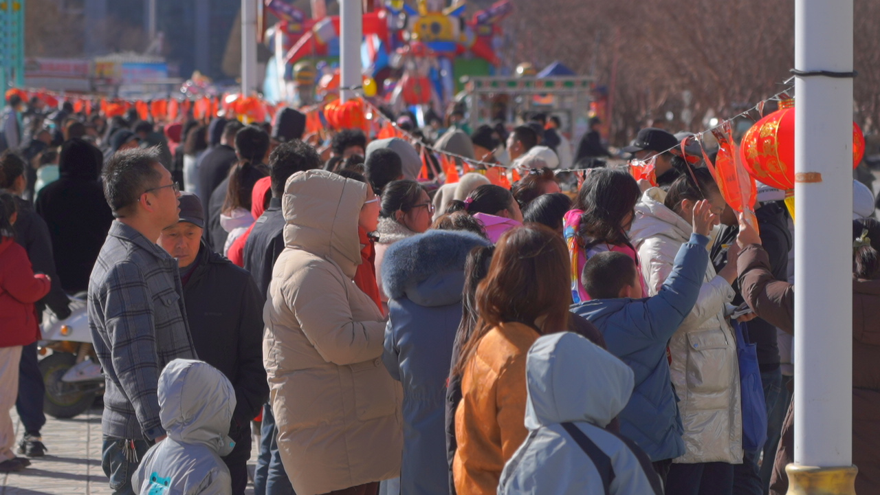灯谜满挂,男女老少穿梭其间,时而凝眉思索,时而笑逐颜开,于传统智慧中尽享元宵之乐。