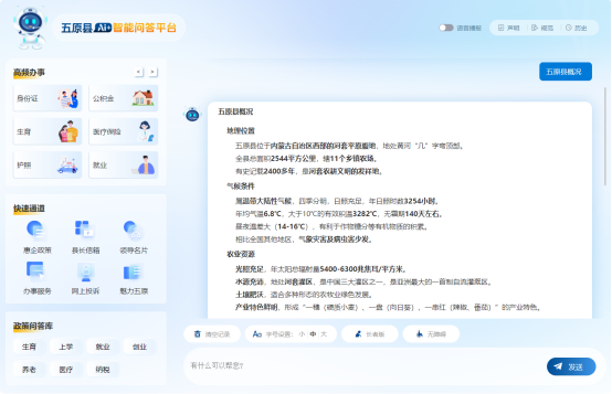 在五原县人民政府门户网站的智能问答界面,市民王梅正通过AI智能问答系统咨询创业补贴政策,短短几秒,系统便给出清晰解答 。