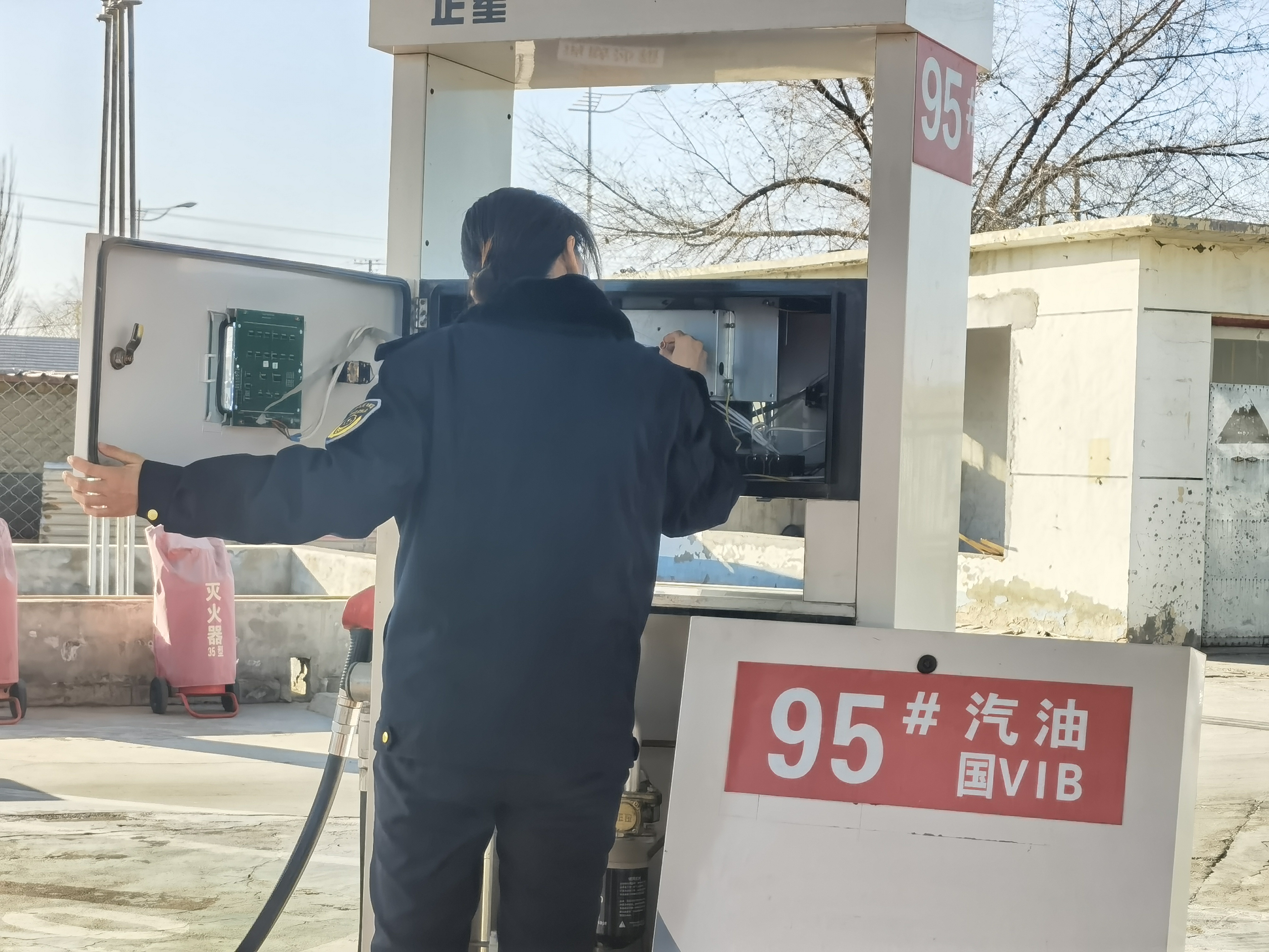 五原县市场监督管理局产品质量计量标准化管理股工作人员钟志鑫介绍说:“此次检查首先要控制加油站的电脑防止有作弊软件进行复原,从而逃脱检查。其次要查看加油机是否经过检定有无检定证书、检定合格证。再查看铅封是否完好无损,主要查看主板、流量计、编码器三部分的铅封有无破损情况。”