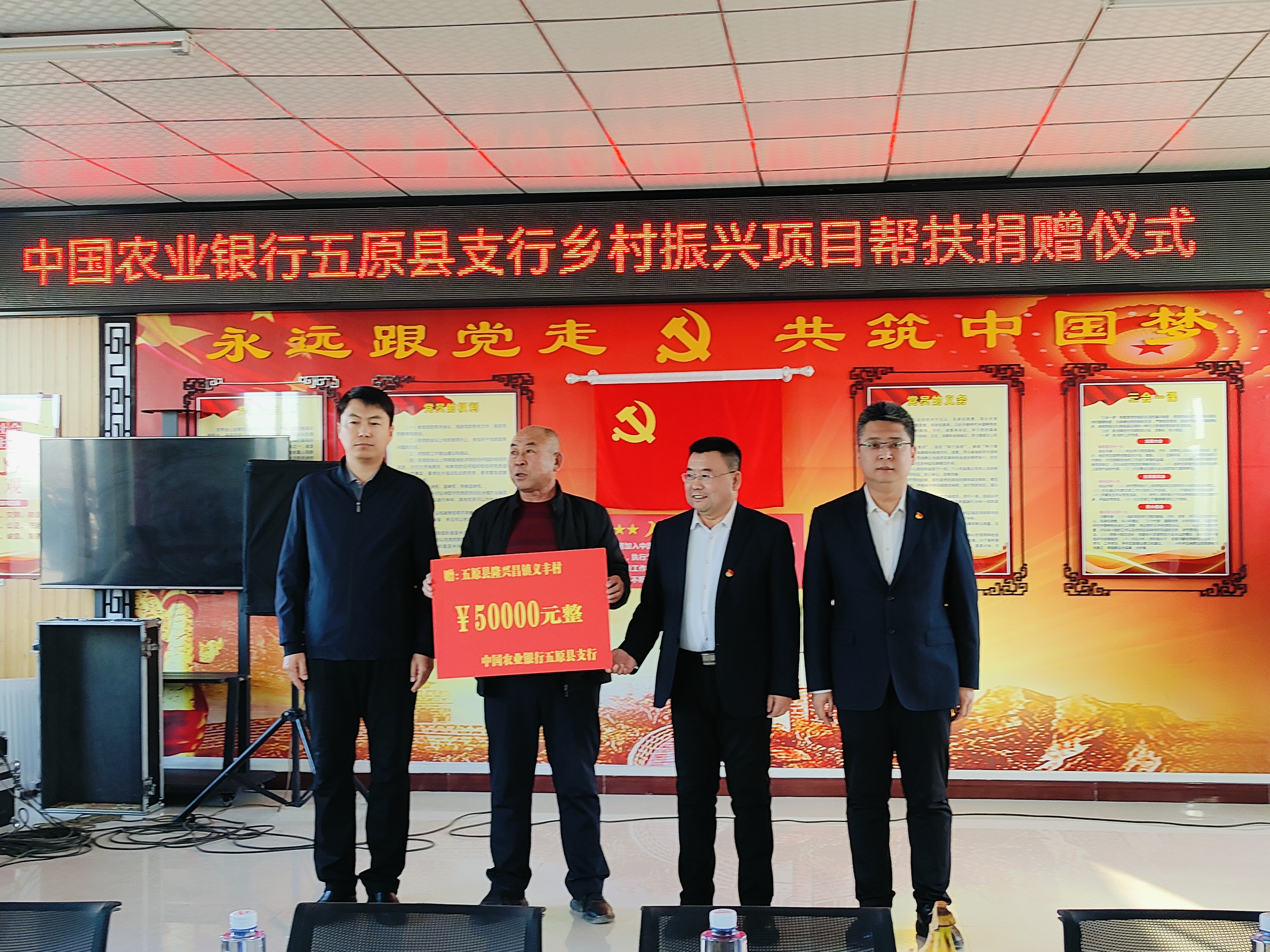 为积极践行社会责任,展现金融担当,1月20日,中国农业银行五原县支行向隆兴昌镇义丰村捐赠5万元乡村振兴资金,助力乡村发展。县委常委、组织部部长乌云达赖出席捐赠活动。