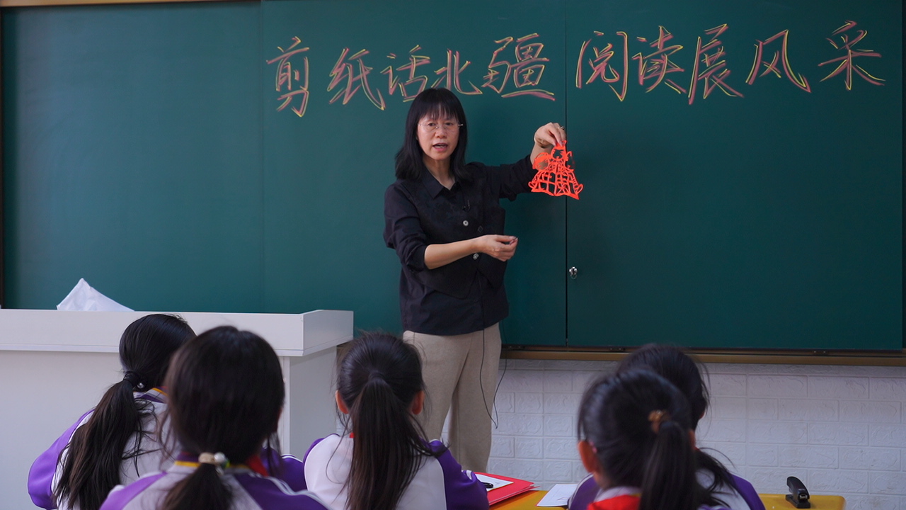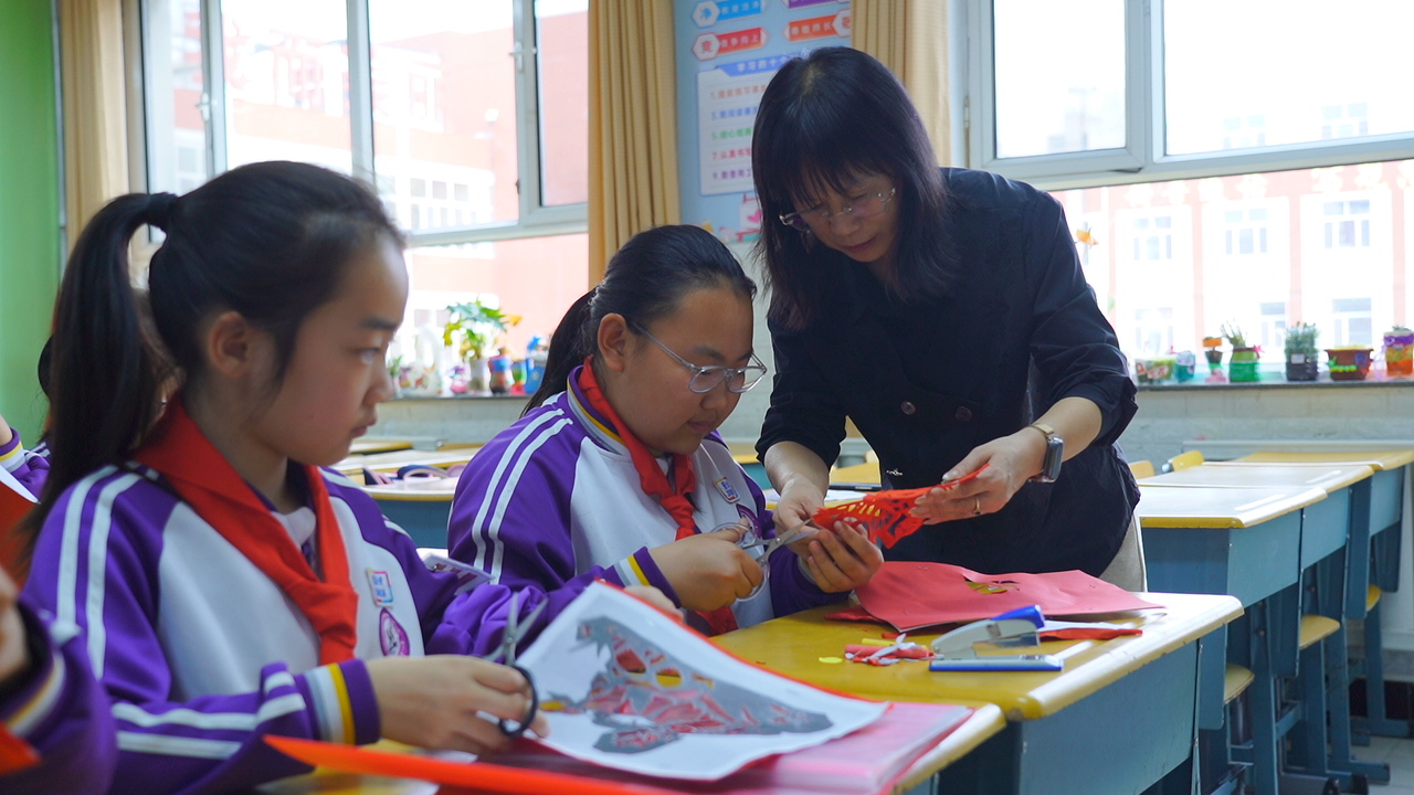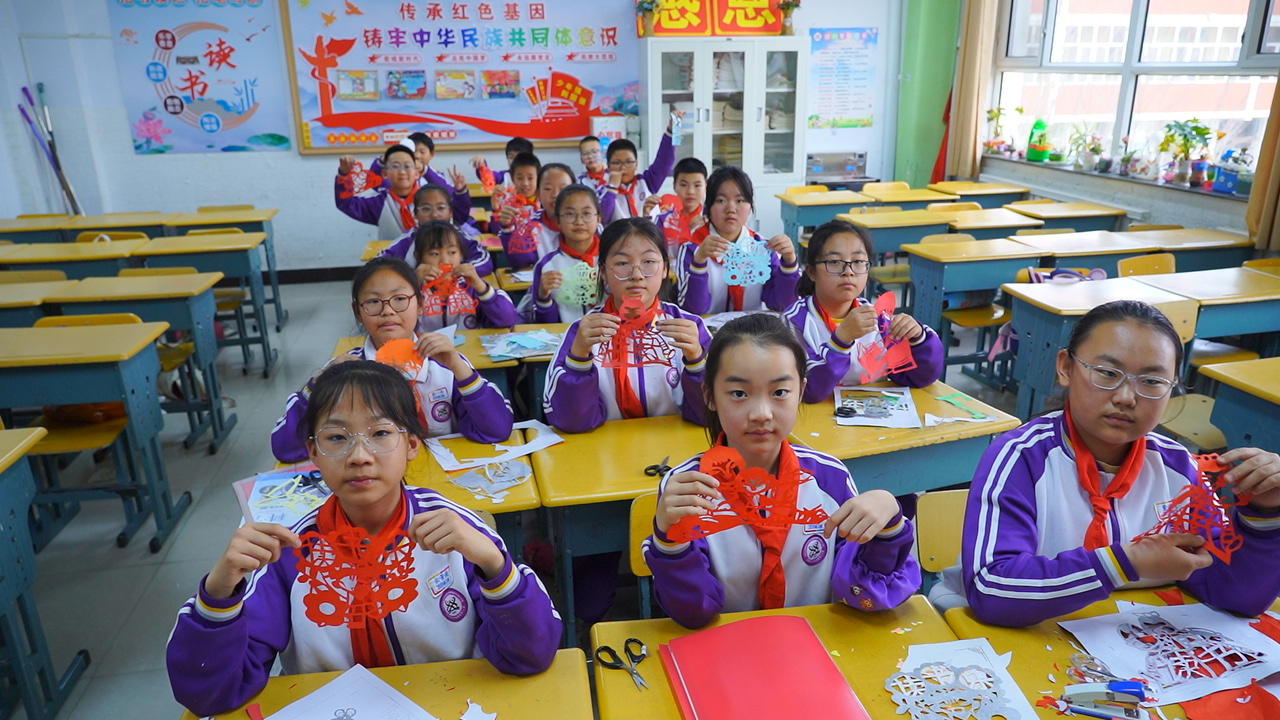 在第一小学的多彩课堂上,气氛热烈而活跃。第三代非物质文化遗产代表性传承人张琳正全神贯注地指导着学生们,剪出一幅幅饱含浓郁地域特色与鲜明民族特征的剪纸作品。一把剪刀、一张彩纸,在师生们的手中上下翻飞、巧妙舞动,不一会儿,精美的图案便跃然纸上。在这个过程中,学生们不仅锻炼了动手实践能力,更在潜移默化中走进了剪纸文化的奇妙世界。