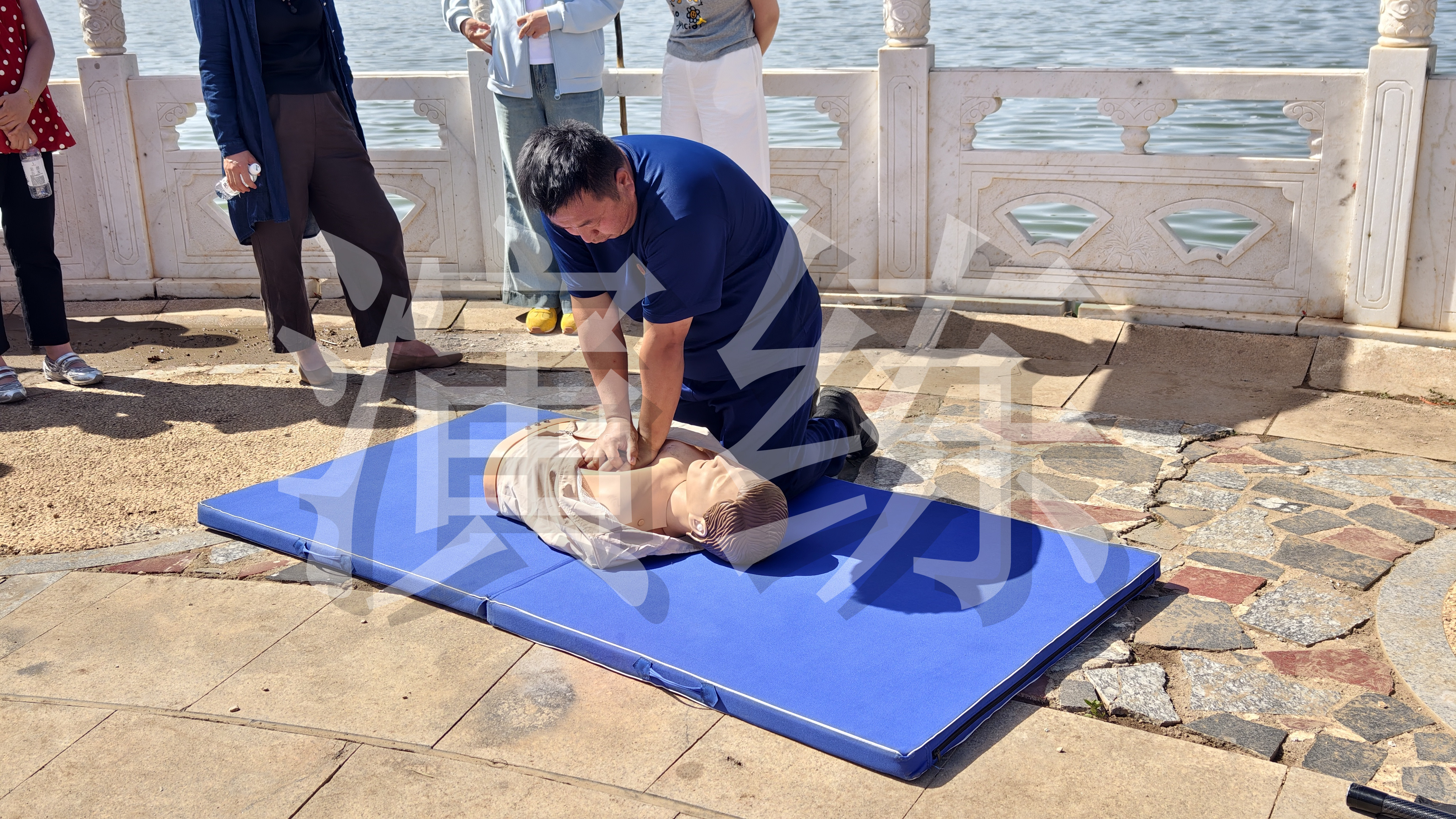 在科普环节,救援人员结合模拟场景,向现场群众详细讲解落水后利用漂浮物科学自救的方法,并通过实操演示心肺复苏、溺水急救流程,手把手传授应急技能,切实提升公众自救互救水平。