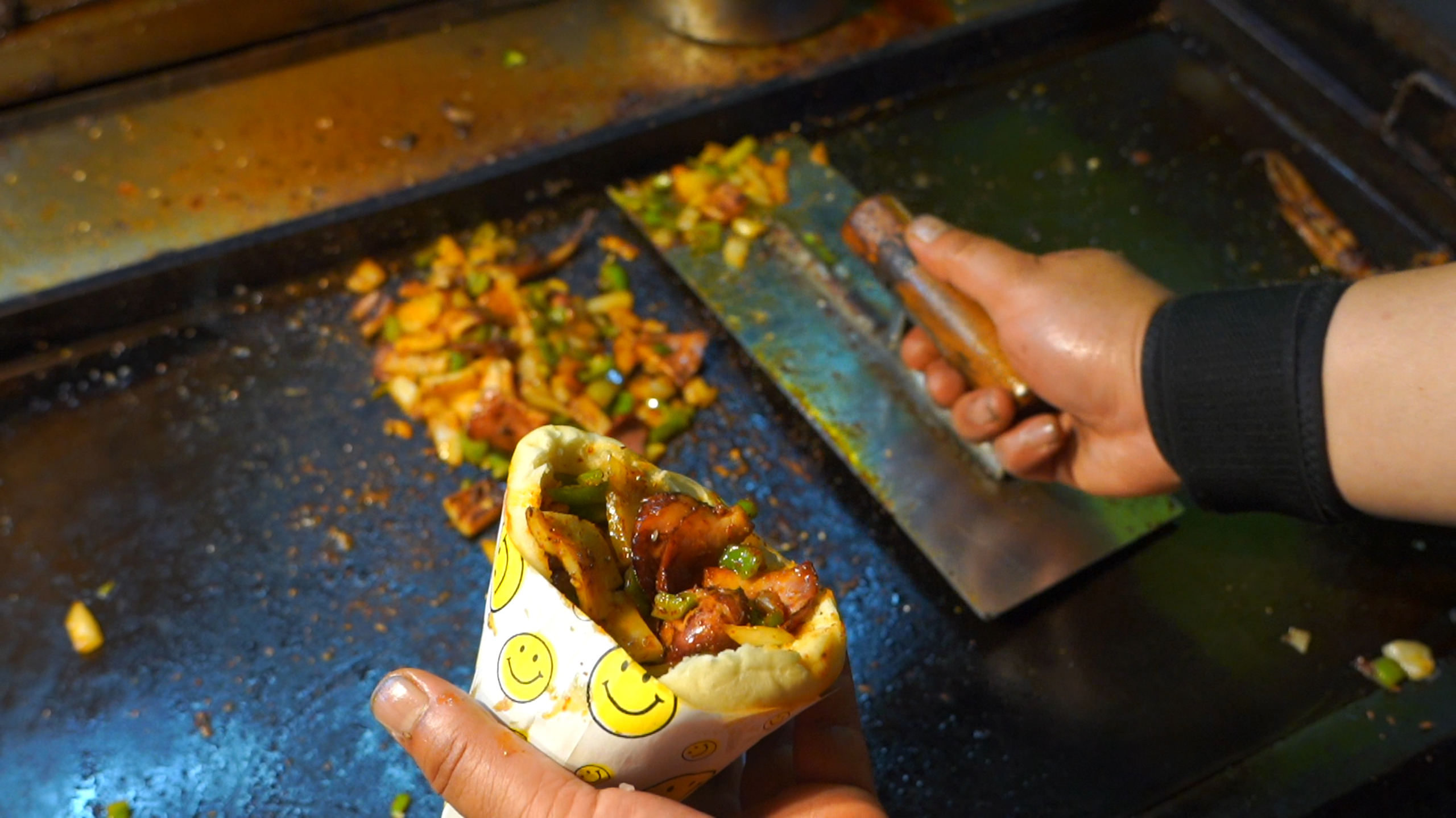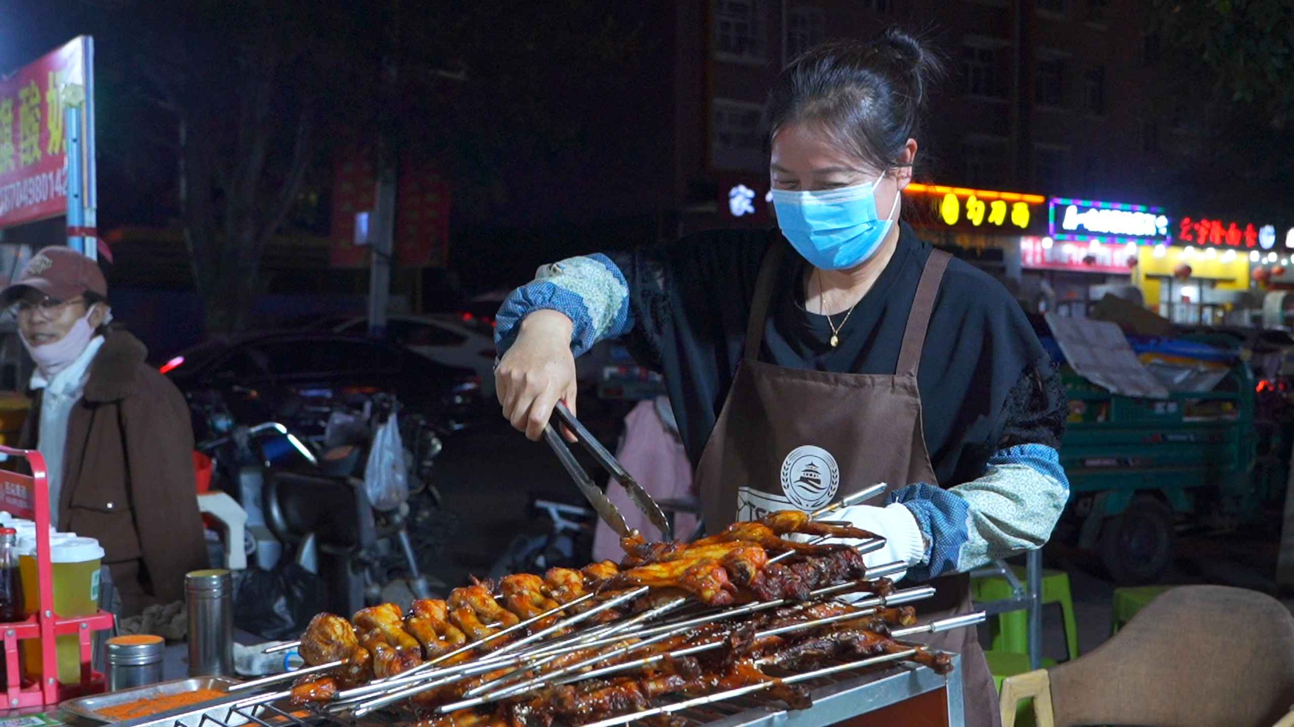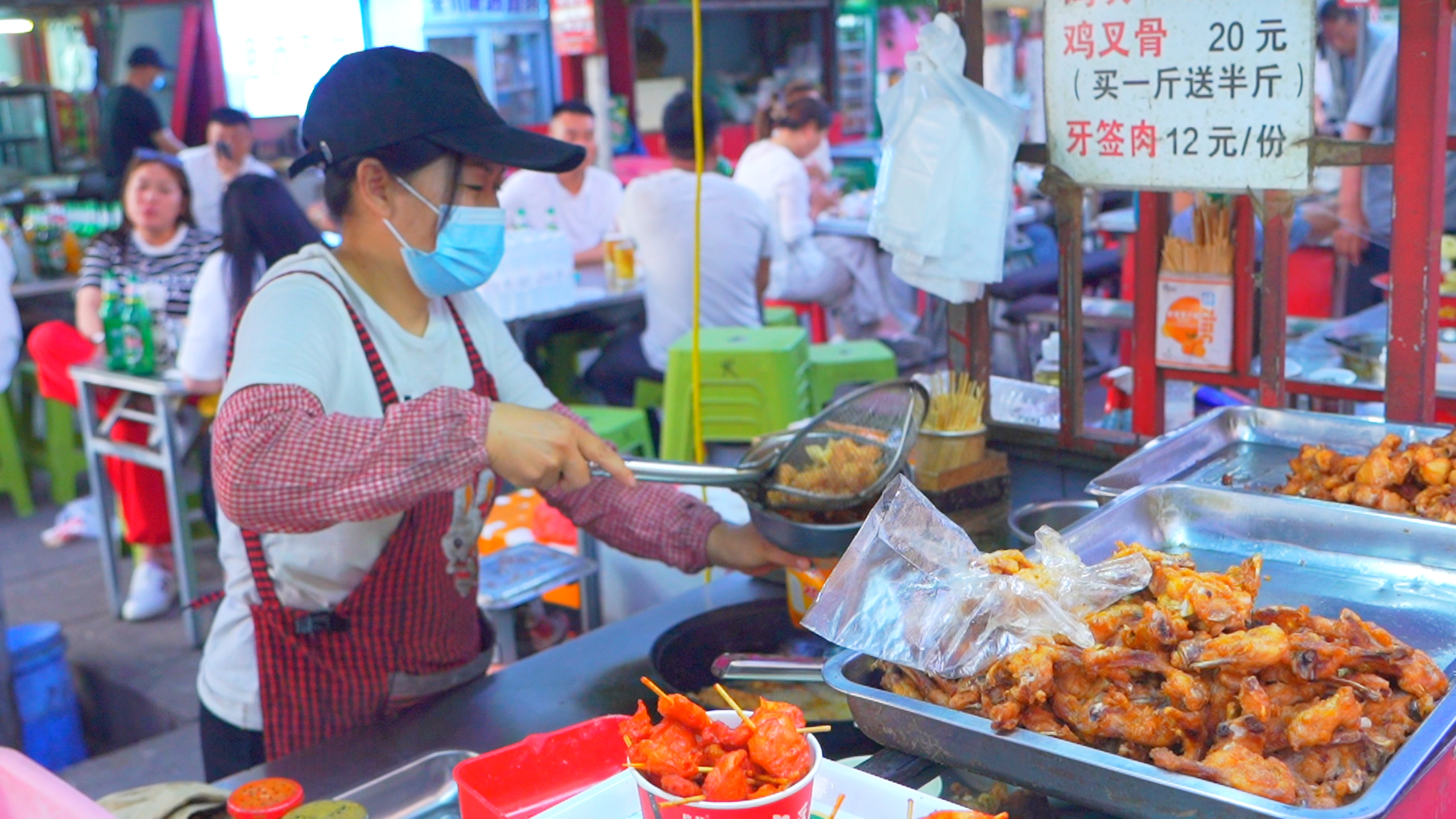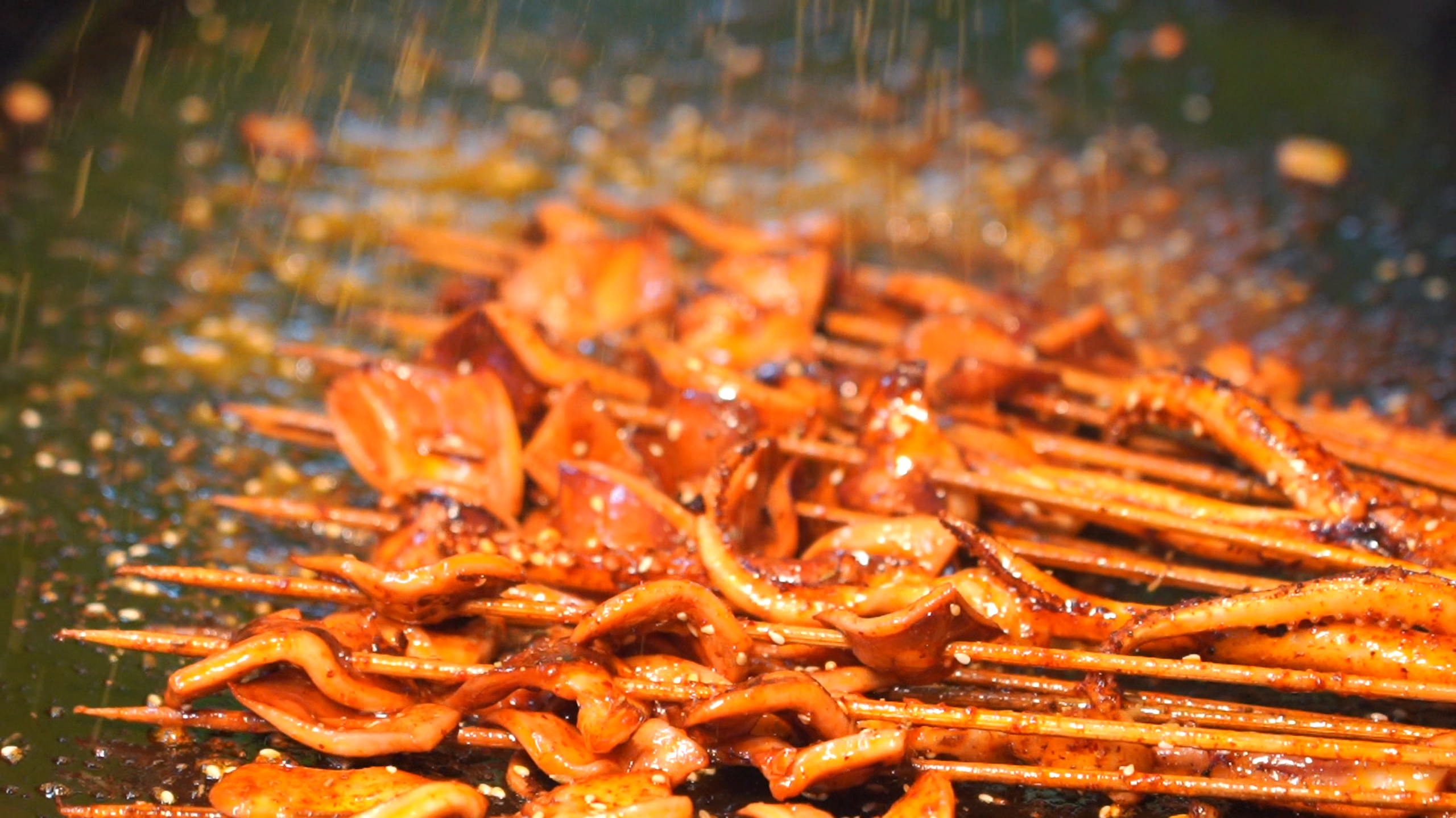经营鱿鱼摊12年的郝亮介绍:“我们夫妻俩每天早上7点就开始备货,现在到了夏季旺季,每天能卖出1000多串。我们的酱料都是秘制的,配方精确到克,鱿鱼也都是精心挑选的新鲜食材。因为品质和味道好,也有不少回头客。”从食材采购到烹饪制作,摊主们的辛勤付出,化作舌尖上的美味,在每个夜晚准时“上线”,吸引着八方食客。