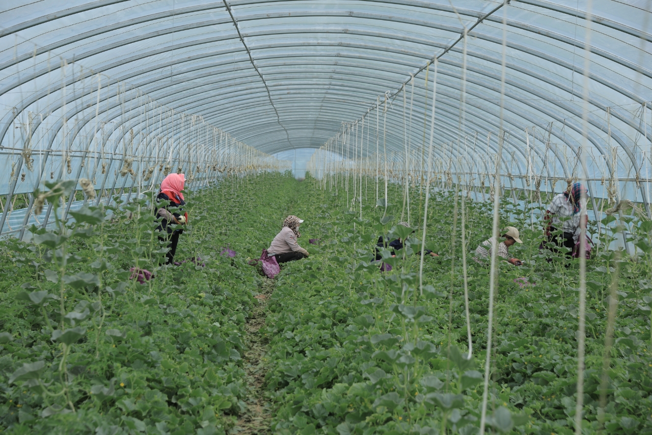 走进五原县新公中镇永旺村500亩瓜果蔬菜园区,一排排钢架拱棚整齐排列。掀开棚帘,阵阵果香扑面而来,一颗颗圆润饱满、色泽诱人的白梨脆香瓜掩映在藤蔓中。棚内,十几个村民正忙着采摘成熟的白梨脆,不一会儿满载香瓜的农运车便沿着乡村小路驶出园区,等待下一轮的筛选打包、过秤发货。