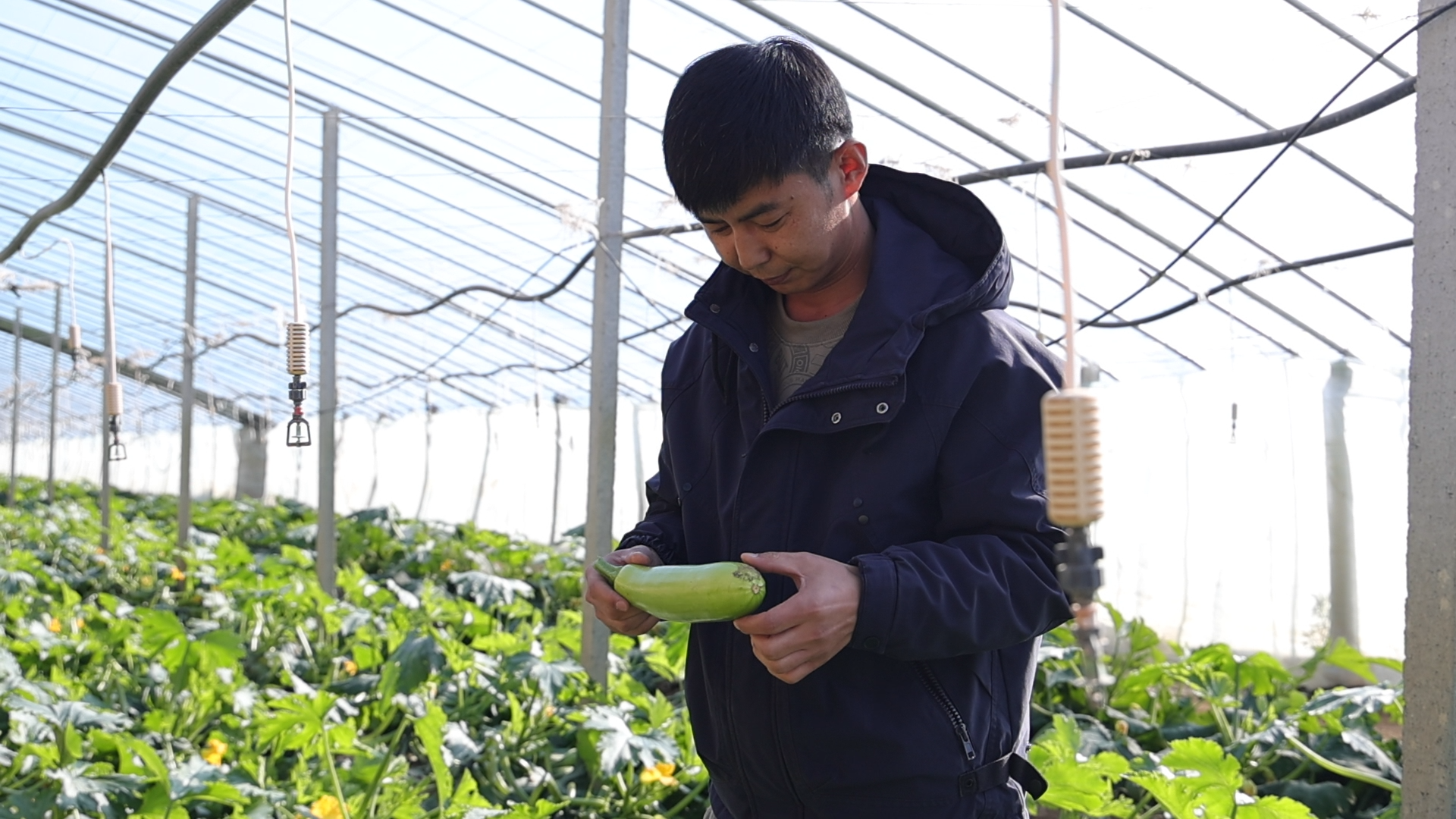 多旺作为本地育苗大户,每年2月至7月是育苗旺季,但8月至来年1月的“空档期”大棚一直闲置,今年,多旺首次尝试以“育苗+蔬菜种植”模式,拓宽增收路径。除了首次种植大葱填补本地春节期间用葱缺口,他还种植了6棚西葫芦。在蔬菜大棚内,翠绿的西葫芦掩映在繁茂的绿叶间,工人们正忙着采摘、分拣、擦拭、打包,这些西葫芦将在包头中转,发往全国各地。