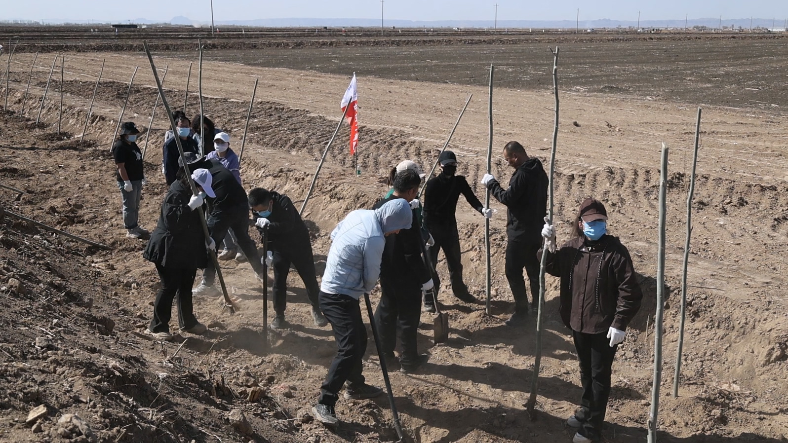 据了解,本次植树活动共栽植优质苗木5290株,并选用了耐盐碱、抗风沙的新疆杨,在有效降低地表风速、减少沙尘扬起同时,还能够从源头遏制土地沙化趋势,为农田、村落撑起抵御风沙的“绿色盾牌”。
