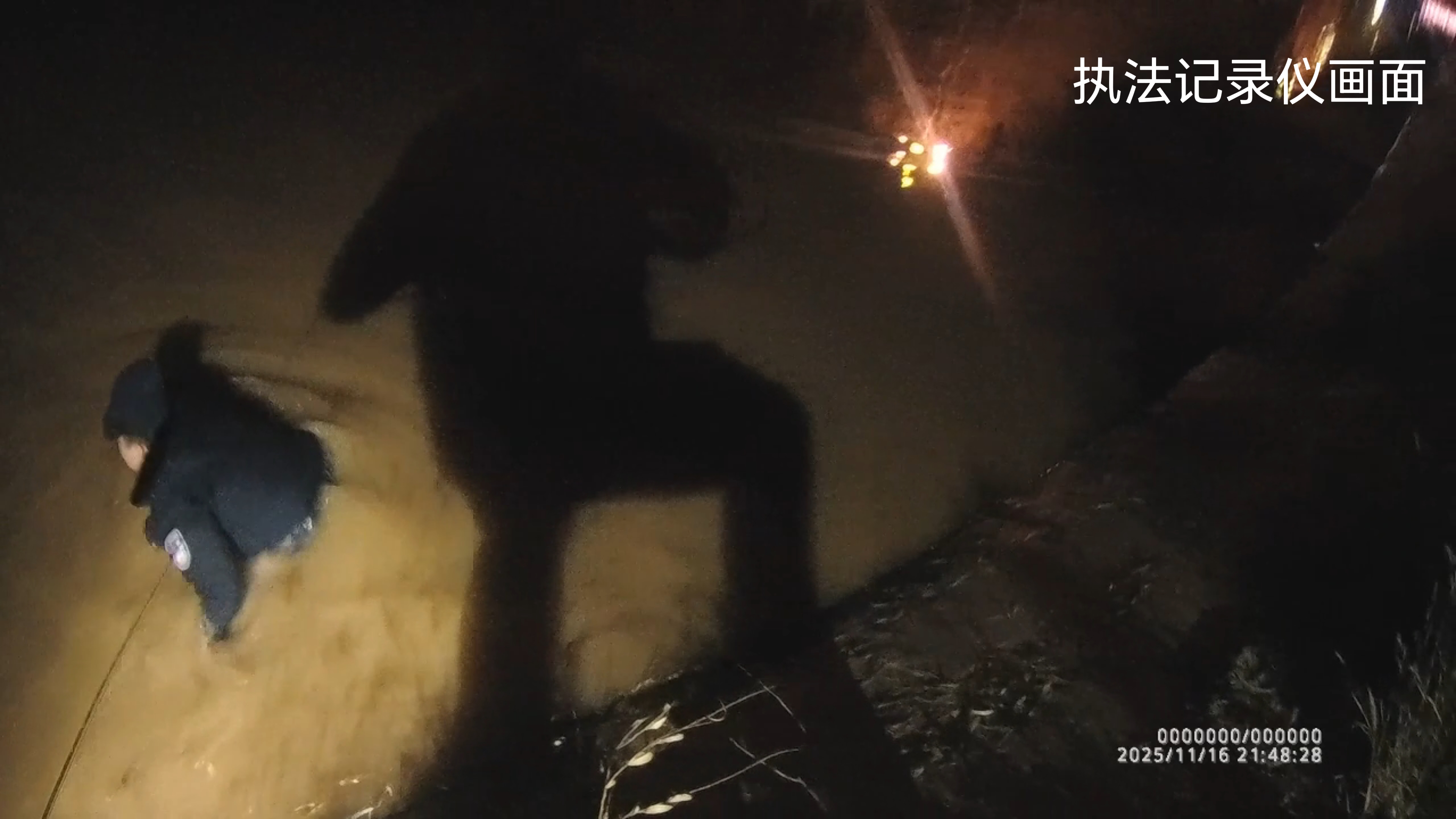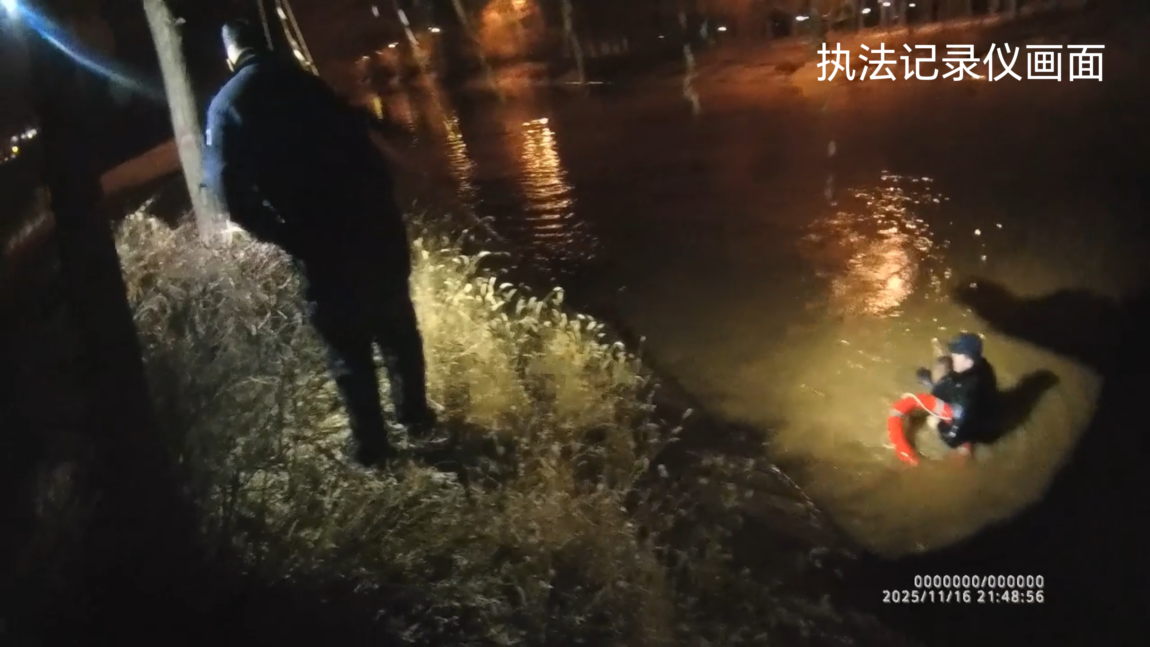 此时,当地气温已低至零下12℃。民辅警抵达现场后发现,男子已逐渐意识模糊,随时可能被湍急的水流卷向河心,情况十分危急。由于河堤陡峭,下水救援成为唯一可行的选择。紧急关头,毕业于中国人民公安大学的新警葛名扬主动站了出来。他迅速捆好救援绳,褪去随身非必要装备,在同事的协助下,一边向落水男子喊话稳定其情绪,一边蹚着冰冷的河水艰难向对方靠近。