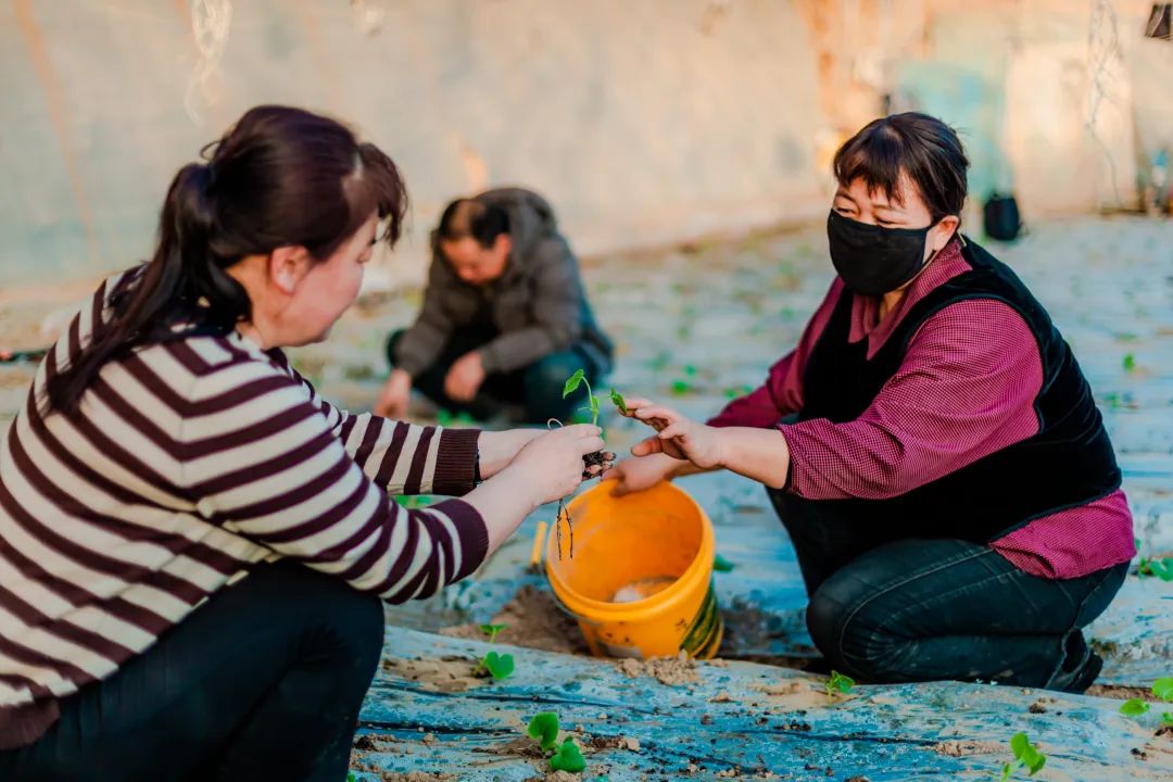 在新园区内,68座钢架拱棚拔地而起,这其中只有22棚是属于园主菅清元的,其余部分都是他帮助10余户农户而建。2021年开始,像菅清元这样的种植大户自发成为志愿者,以“强带弱、大带小”的方式,帮助劳动能力弱的农户搭棚、育苗、施肥、铺膜等全过程管理。