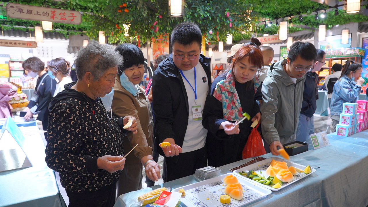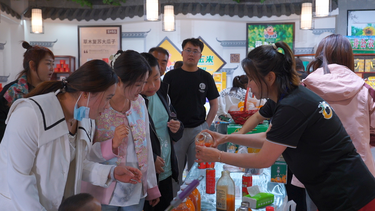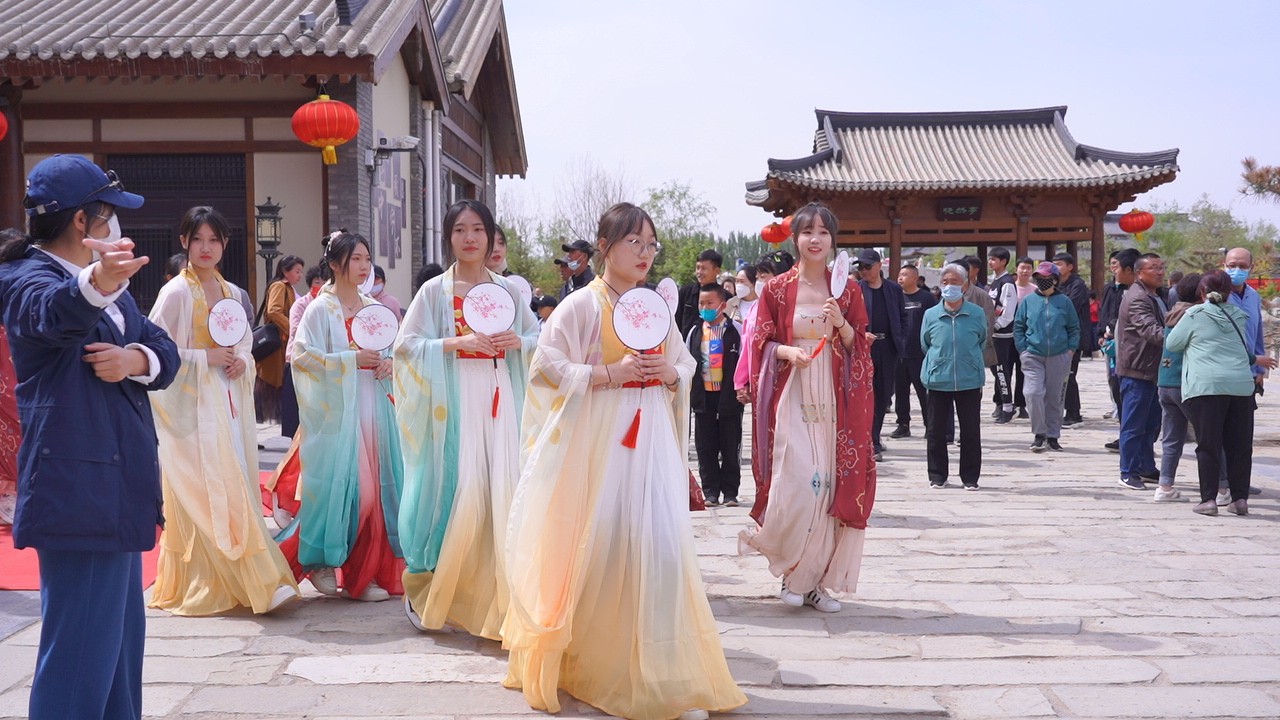 在五原印巷景区内,二百余名演职人员,身着华美汉服,齐腰襦裙翩然而至,穿梭于古风建筑中,上演一场绝美视觉盛宴。如此亮丽人文美景引得不少游客观众驻足回眸,称赞欣赏。活动现场,本土特色农特产品更是吸引市民游客竞相选购、款款“五原味”美食惹人馋、酸甜可口的黄柿子汁深受年轻人热捧、琳琅满目的展位尽显大美五原的热情与魅力。