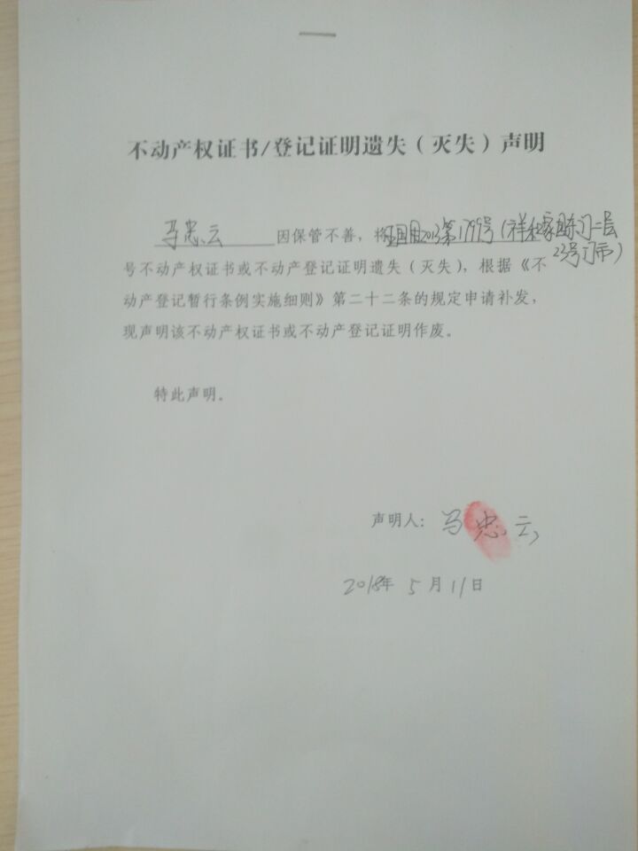 五国用2013第1799号(祥和家园东门二层23号门市) 遗失声明