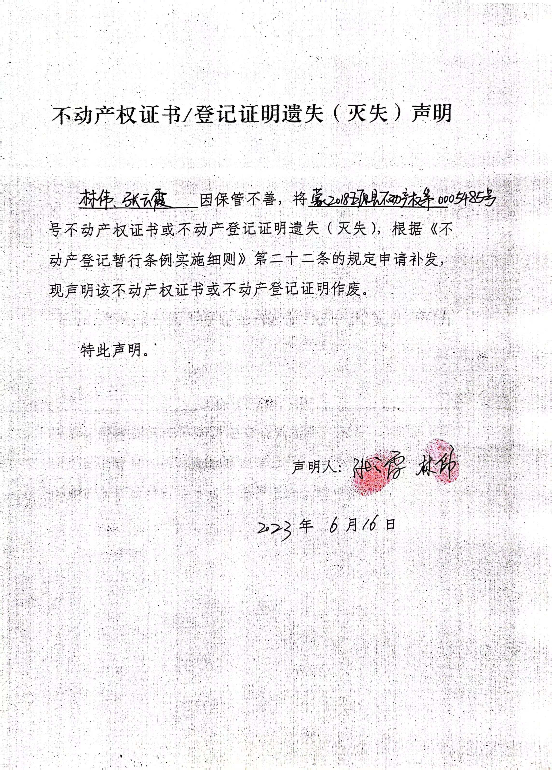林伟、张云霞 遗失:蒙2018五原县不动产权第0005485号