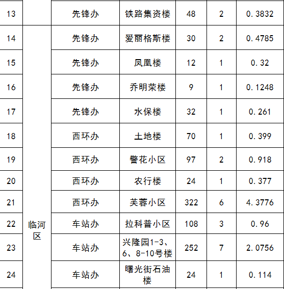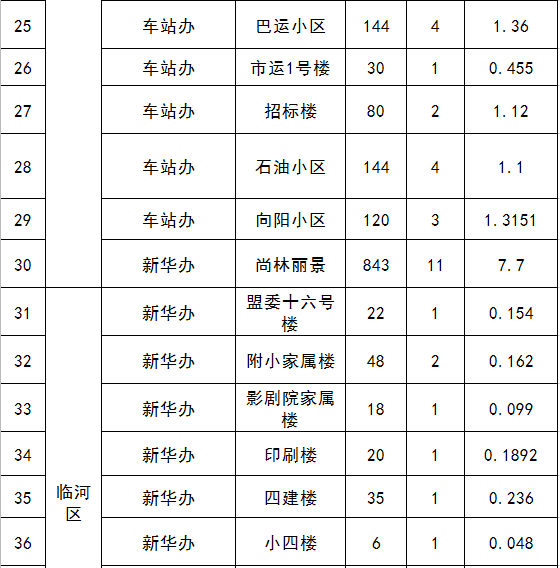 → 临河区有利民小区等39个老旧小区、45.87万平米,涉及122栋楼、4953户居民;
