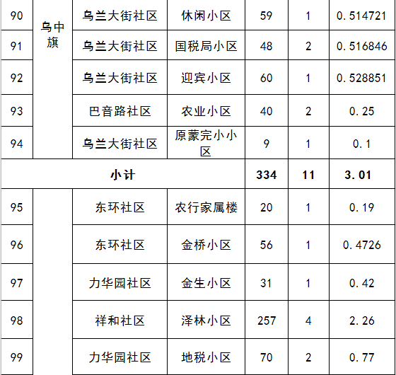 → 乌拉特中旗有园丁小区等8个老旧小区、3.01万平米,涉及11栋楼、334户居民;