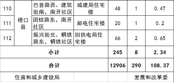 → 磴口县有翠园住宅楼等5个老旧小区、2.34万平米,涉及8栋楼、245户居民;