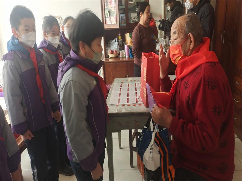 活动中,退役军人事务局及团县委相关负责人组织第一小学优秀少先队员代表先后到抗美援朝老兵张三娃与退伍老兵苏青山家中,为他们送去了慰问品与慰问金,也送去了党和政府的关怀与节日的问候。少先队员们向退伍老兵送上了自己亲手制做的小礼物,并郑重地为老兵们系上了红领巾。退伍老兵为少先队员们讲述了当年的军营生活和革命故事,鼓励少先队员珍惜现在来之不易的幸福生活,听党话、感党恩、跟党走,为建设祖国贡献力量。