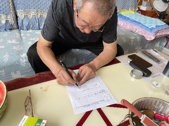 近日,张大爷的子女来到五原县不动产登记中心帮其办理业务,但因张大爷年纪较大,行动不便,无法现场签字确认,五原县不动产登记中心的工作人员了解详细情况后,立即与其子女约定时间,派专人开展上门服务,完成相关材料的签字确认。