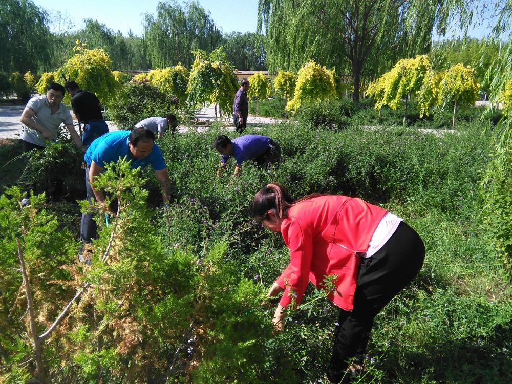(第二中学:李霞)五原二中党支部深入贯彻市教育局“两学一做”学习教育座谈会精神,紧密联系实际,发挥党员先锋模范作用。近日,组织支部全体党员干部和入党积极分子,开展了一次“净化环境,美化校园”为主题的义务劳动活动,用实际行动绿化环境,美化校园。
