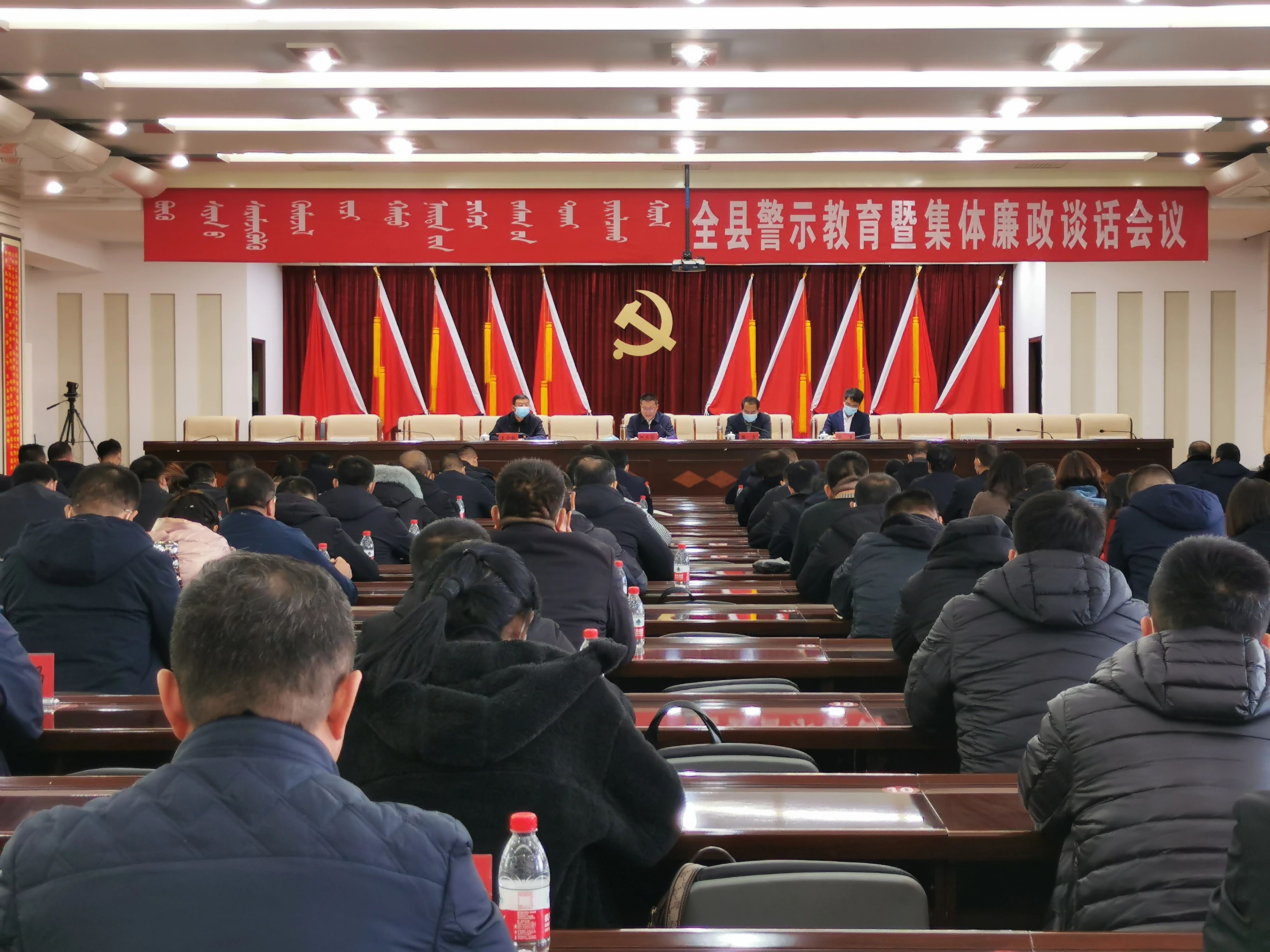 12月11日,我县召开全县警示教育暨集体廉政谈话会议。市政府副市长、县委书记阿其图出席会议并讲话。县委副书记、政府代县长樊文主持会议。王介枫、孟克朝鲁、乌云达赖、周昱、韦嘉、郭连岳、吴刚等县处级领导参加会议。各乡镇党委书记、镇长、纪委书记,县直各部门主要负责人、派驻纪检组长和二级单位主要负责人参加会议。