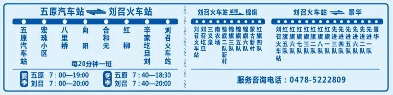 冬季运营时间为:五原7:20—18:30刘召7:40—20:00