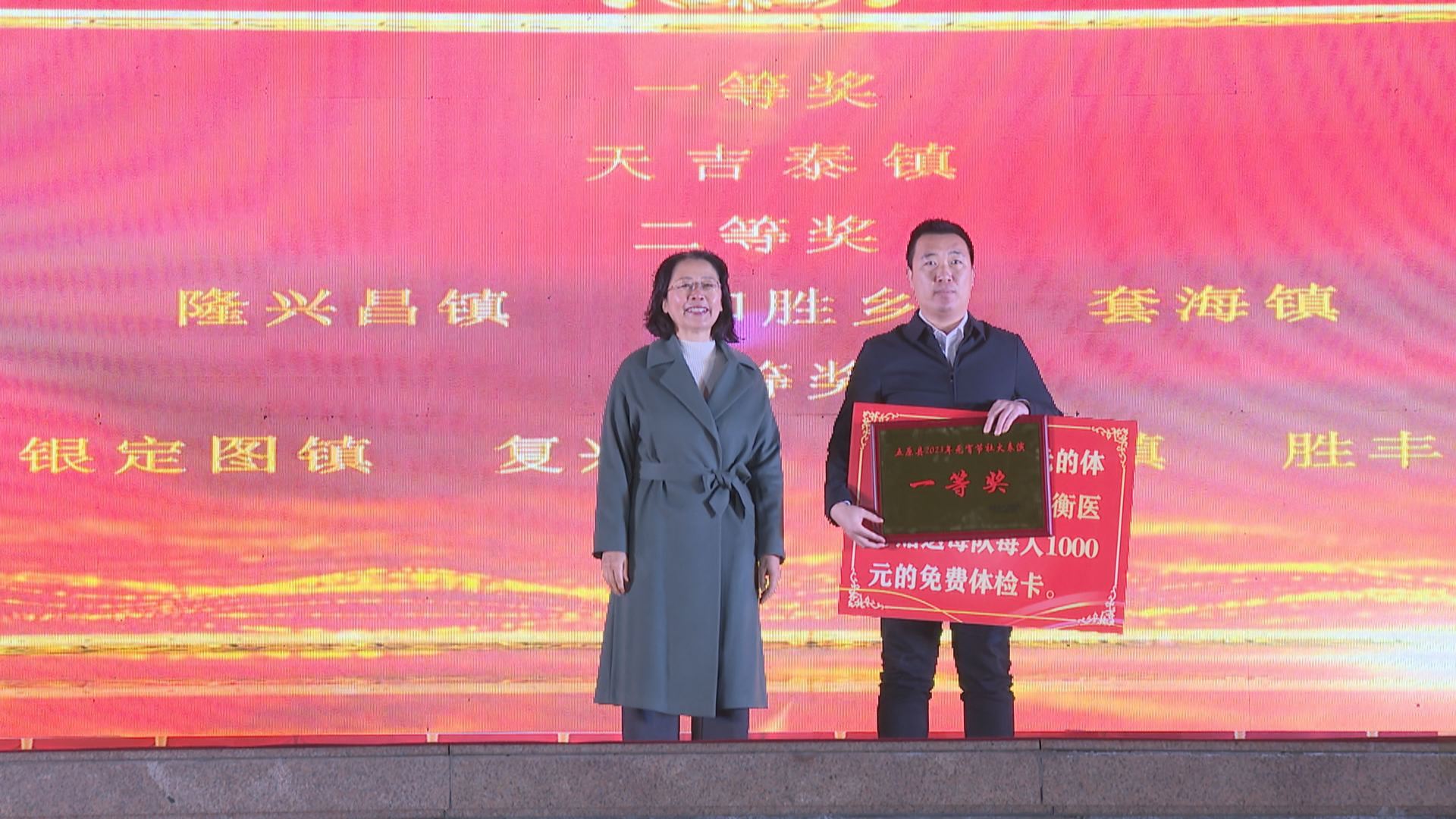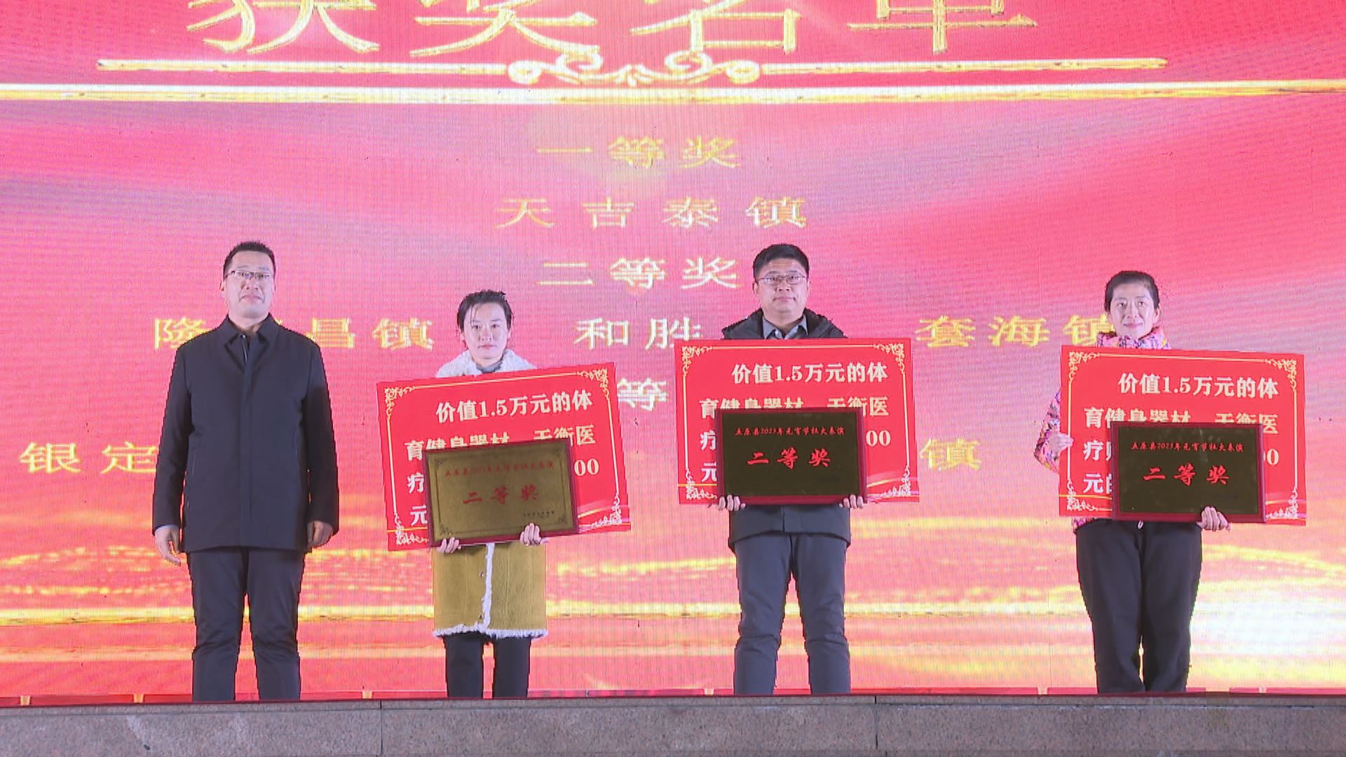 晚会过程中,县领导詹美、郭连岳、葛日勒图、邵永斌分别为社火展演中获得一等奖、二等奖、三等奖的乡镇颁奖。