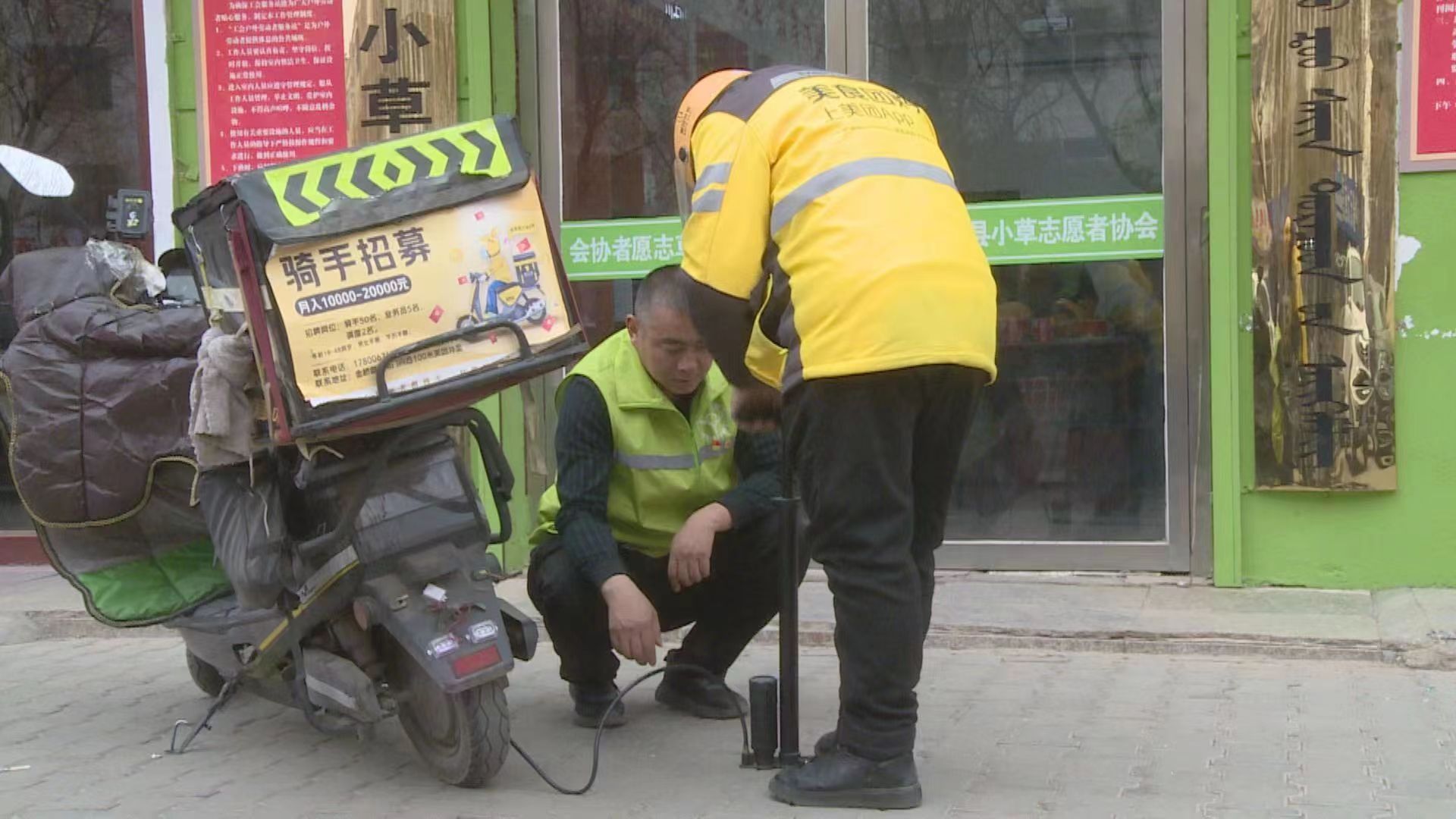 寒冬时节,屋外寒风袭人,但遍及五原县城内各处的户外劳动者驿站里却暖意融融。走进位于建设东路泽林家园小区门口的户外劳动者驿站,也是于近日被全国总工会评为2023年“最美工会户外劳动者服务站点”,记者看到,站内宽敞明亮,服务桌椅、饮水机、微波炉、应急医药箱、书报架、手机充电器、打气筒、雨伞、Wi-Fi等便民设施、设备一应俱全,可供环卫工人、外卖送餐员、快递员、户外执勤执法人员歇脚休憩,极大地方便了户外劳动者。“这个驿站给了我们很多方便,尤其现在天冷了不忙的时候可以来这暖和暖和、给手机充充电、喝口热水,让我们心里感到很温暖,很有家的感觉。”外卖送餐员李吉隆说。