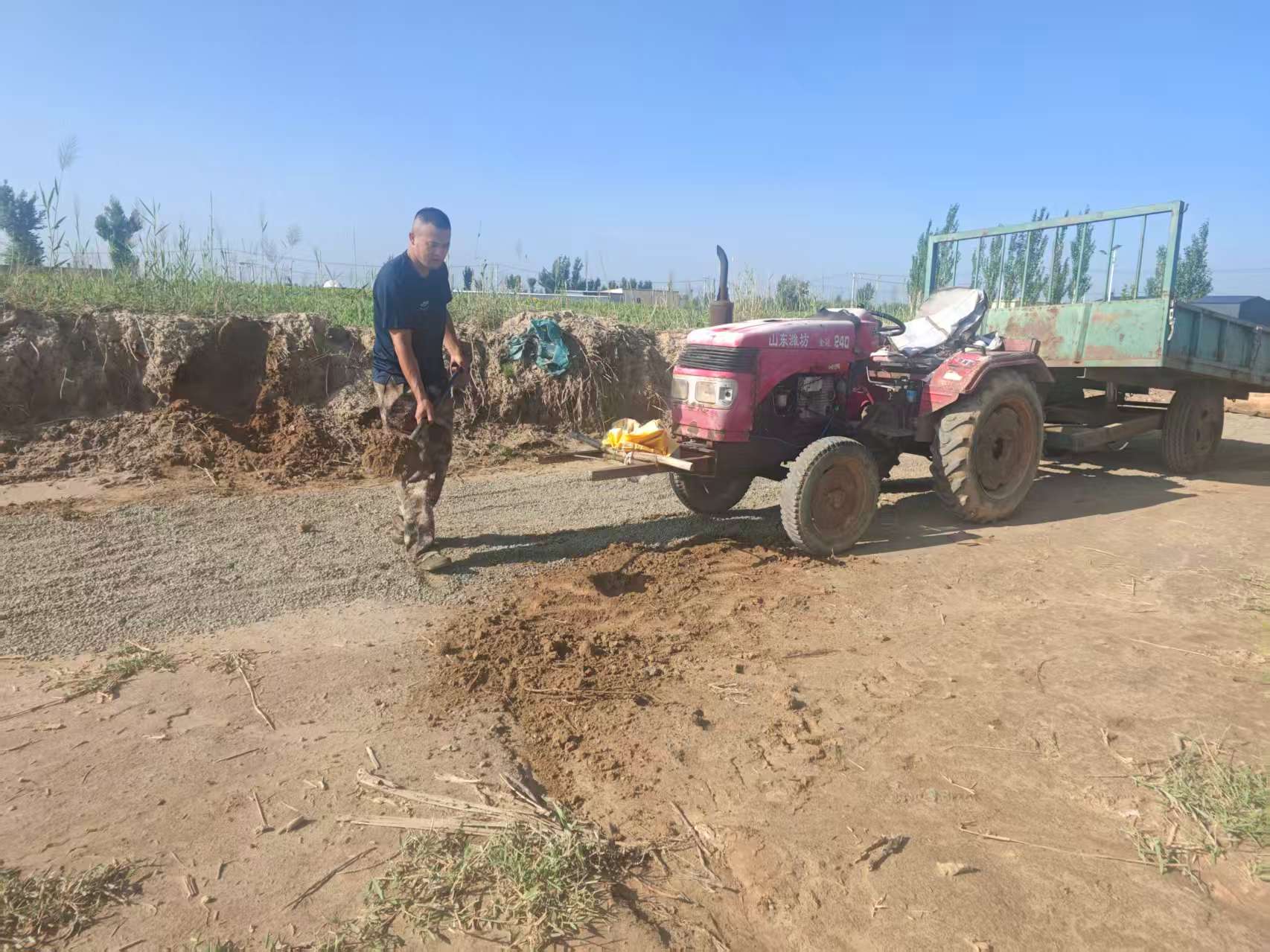 五原县和胜乡新永村三组村民郭翻萍说:“咱们这儿的路,下雨天真是难走得很,骑三轮车、电动车,一下子就陷进去了。要是现在能把路修得畅通些,到了秋天秋收的时候,不管是大机器、四轮车、三轮车还是收割机,就都好走了。”