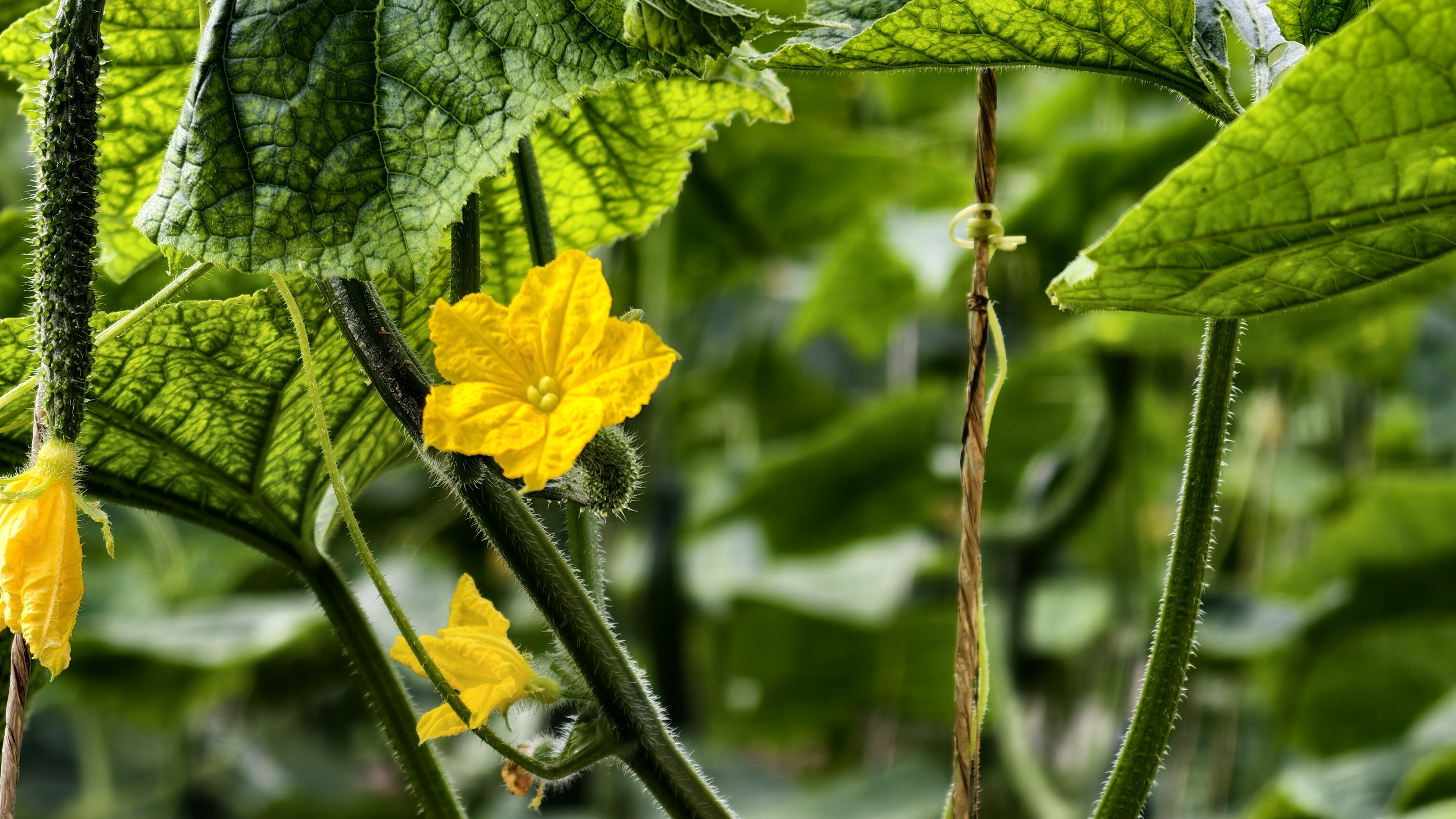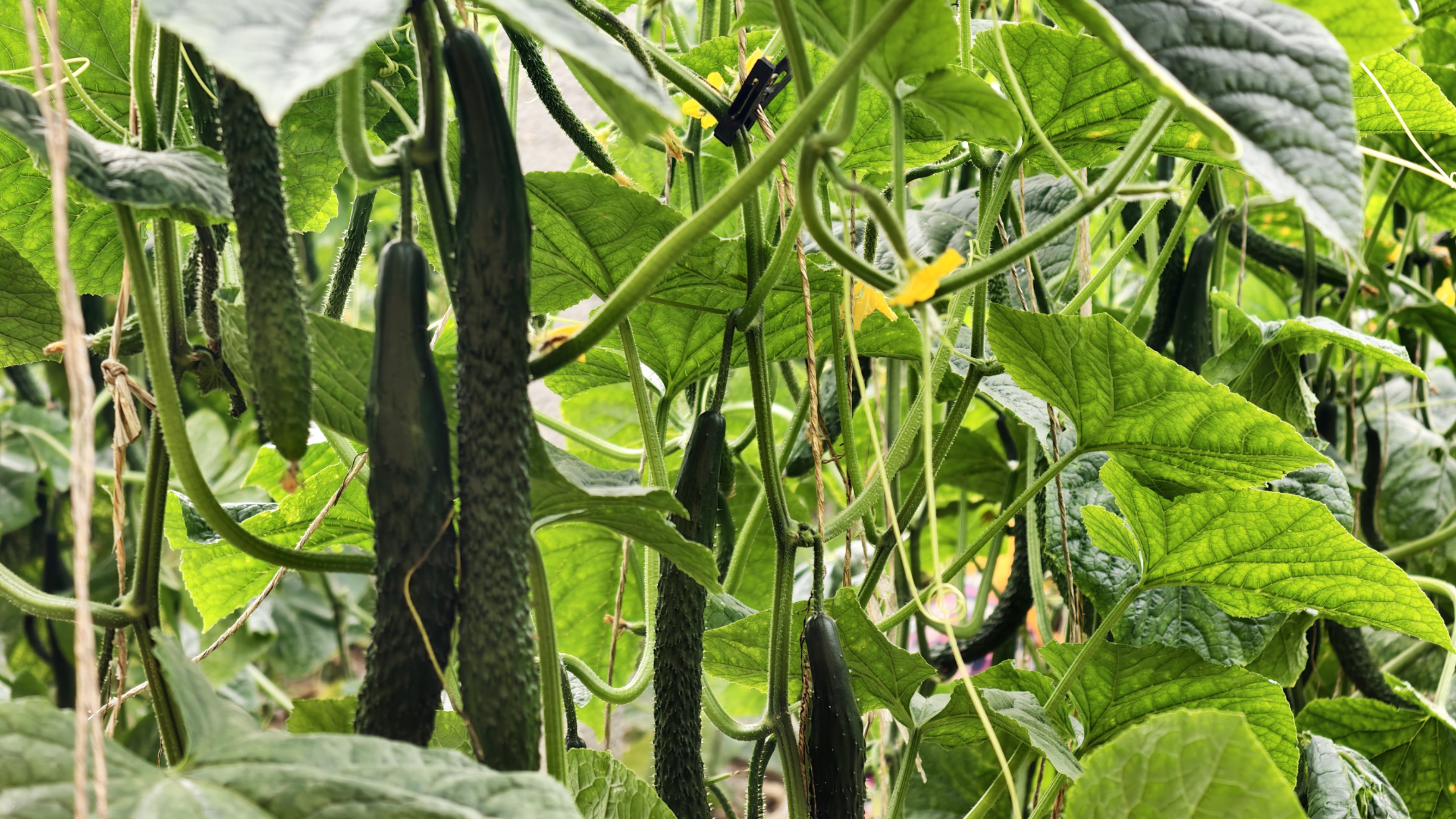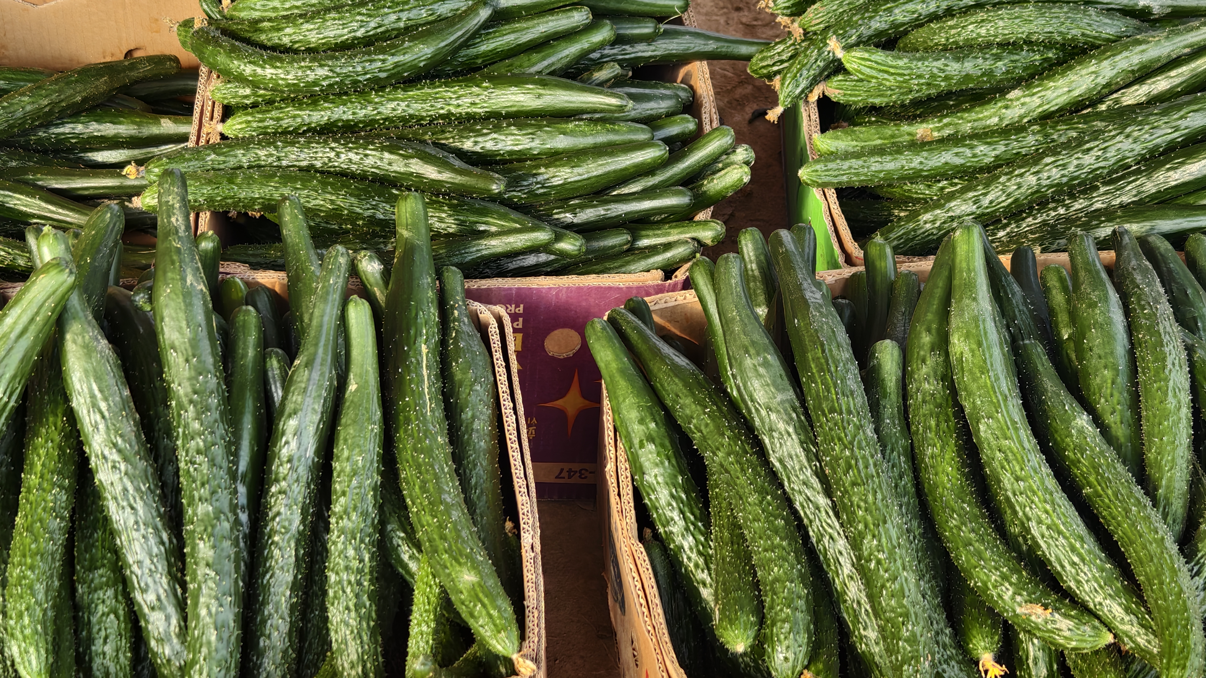 初冬时节,寒意袭人,五原县锄禾设施农业产业园区的冬暖式温室大棚里暖意融融、满目翠绿。一根根顶花带刺的黄瓜挂满藤蔓,焕发着勃勃生机,映照着农户们丰收在望的喜悦笑容。