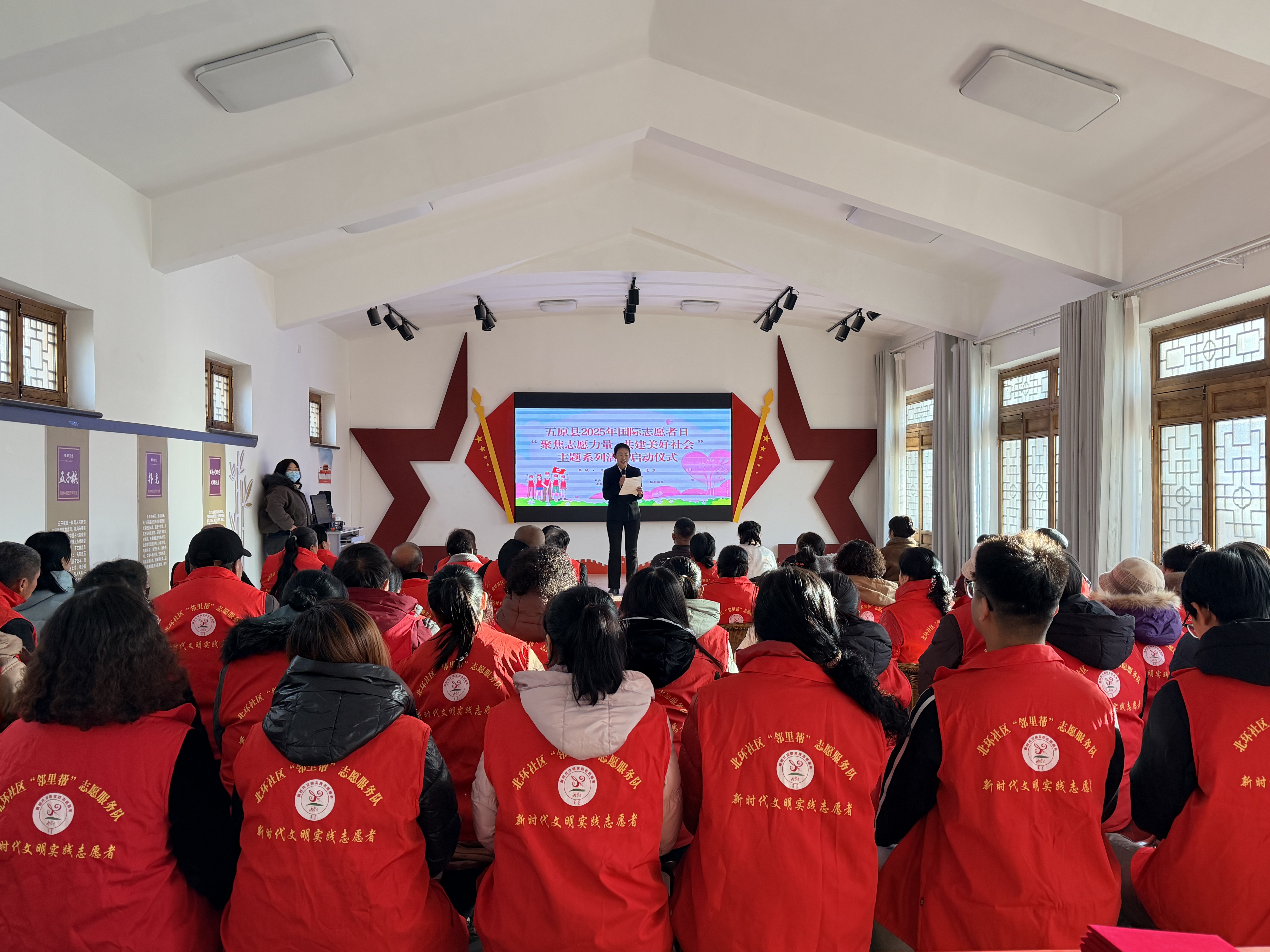 2025年12月5日是第40个国际志愿者日,为大力弘扬“奉献、友爱、互助、进步”的志愿精神,五原县委员会社会工作部联合北环社区新时代文明实践站,举办主题为“聚焦志愿力量 共建美好社会”的系列活动启动仪式。来自全县各行各业的志愿者代表参加活动。