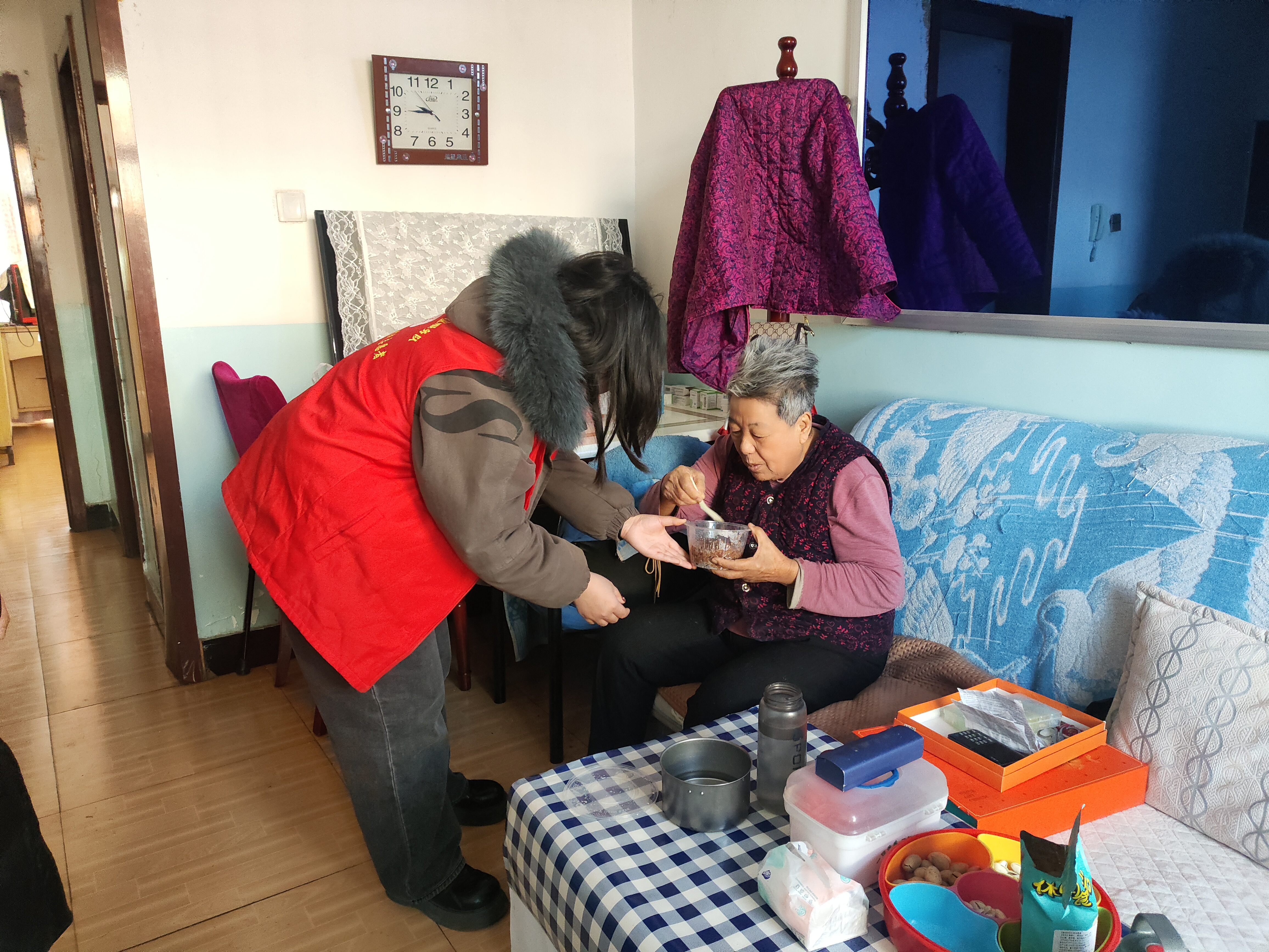 为了让辖区高龄老人、独居老人等特殊群体也能感受到节日关怀,社区还专门安排工作人员带着腊八粥上门慰问,让温暖不缺位。