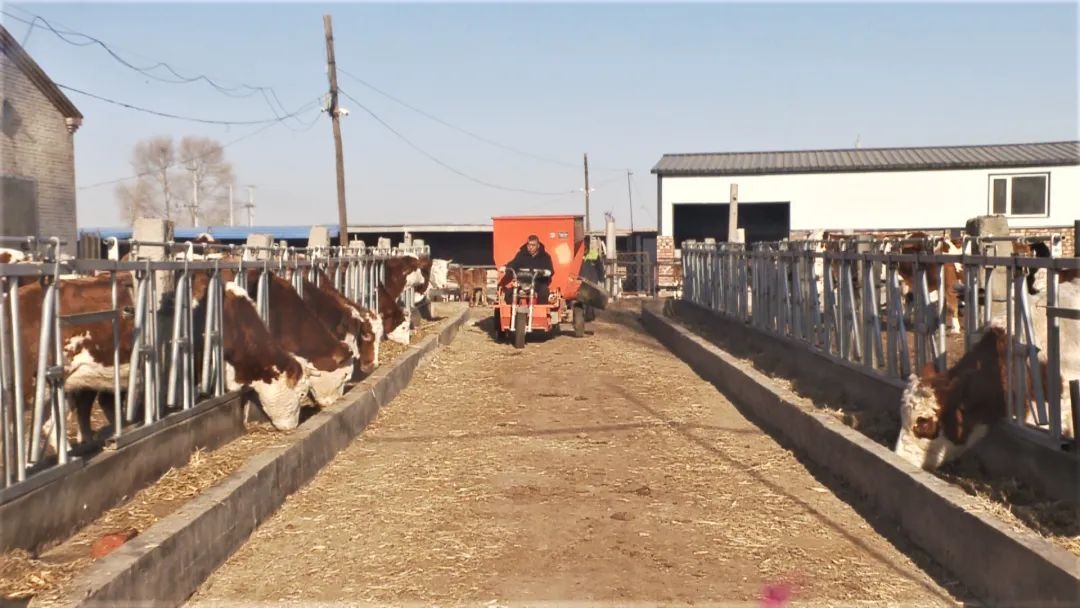 见到温明清时,他正开着饲料混合车准备去喂牛,一台车一个人,十几分钟就完成了上百头牛的喂养过程。喂过牛之后,温明清一边带记者参观养殖场,一边讲起了他的“致富经”。2016年,温明清开始发展肉牛养殖,但是由于当时缺乏经验,饲养的肉牛生长速度缓慢,饲养量始终发展不起来。为此,他在学中养,养中学,并不断总结养殖经验,养殖技术越来越成熟,这让他深深意识到养牛不仅要有技巧,更要科学饲养。