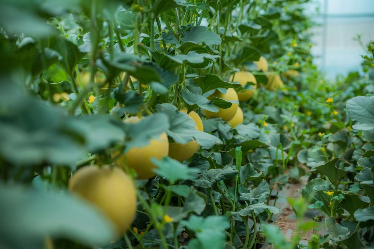 天勐农业、伊航农业、裕煌果业,三家企业负责对现代农业产业园实行统一管理并提供基础设施保障、订单签订、种苗提供、农资采购、作物管理、技术指导、农业保险、销售服务的“八统一模式”,农户自主选择参与种植。农业生产、科学研究和学术教育有机融合,农民在家门口就能学有所用。既推动了蜜瓜种植技术的转化和推广,又进一步健全和完善了农企利益联结机制,把农业产业链的增值收益、就业岗位留给农民,让农民更多分享产业园的发展成果,提高生产效益和经济效益,助推农业农村现代化建设。