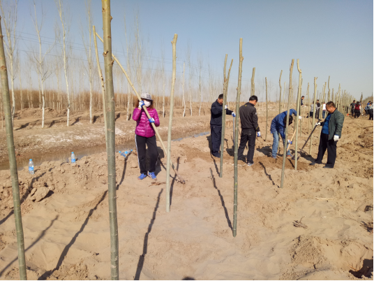 到达目的地后,同志们精神饱满地挥锹抡铲,挖坑扶苗,夯实土层,干劲十足,经过一天的挥汗奋战,和其他包扶单位及村干部、村党员齐心协力,将小树整齐的栽到了公路两侧,圆满完成了这次植树任务
