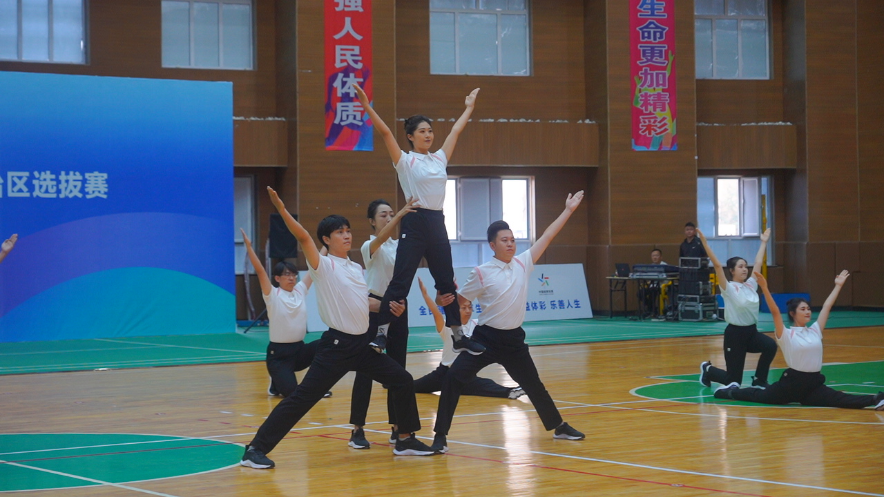 随着音乐的响起,14支代表队比赛正式开始。比赛场上,运动员们动作整齐划一,伸展、扩胸、踢腿、体转,每个动作皆标准规范、刚劲有力,他们以矫健的身姿和自信的笑容传递着积极向上的正能量。