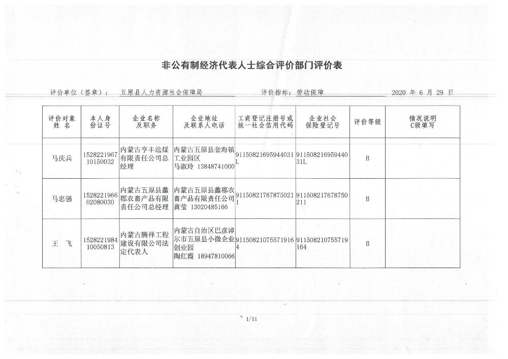 (非公有制经济代表人士综合评价公示)
