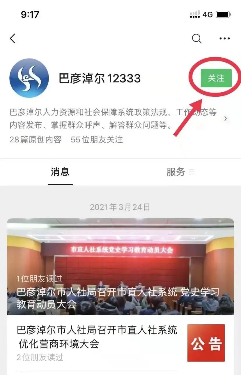 “巴彦淖尔12333”微信公众号认证流程
