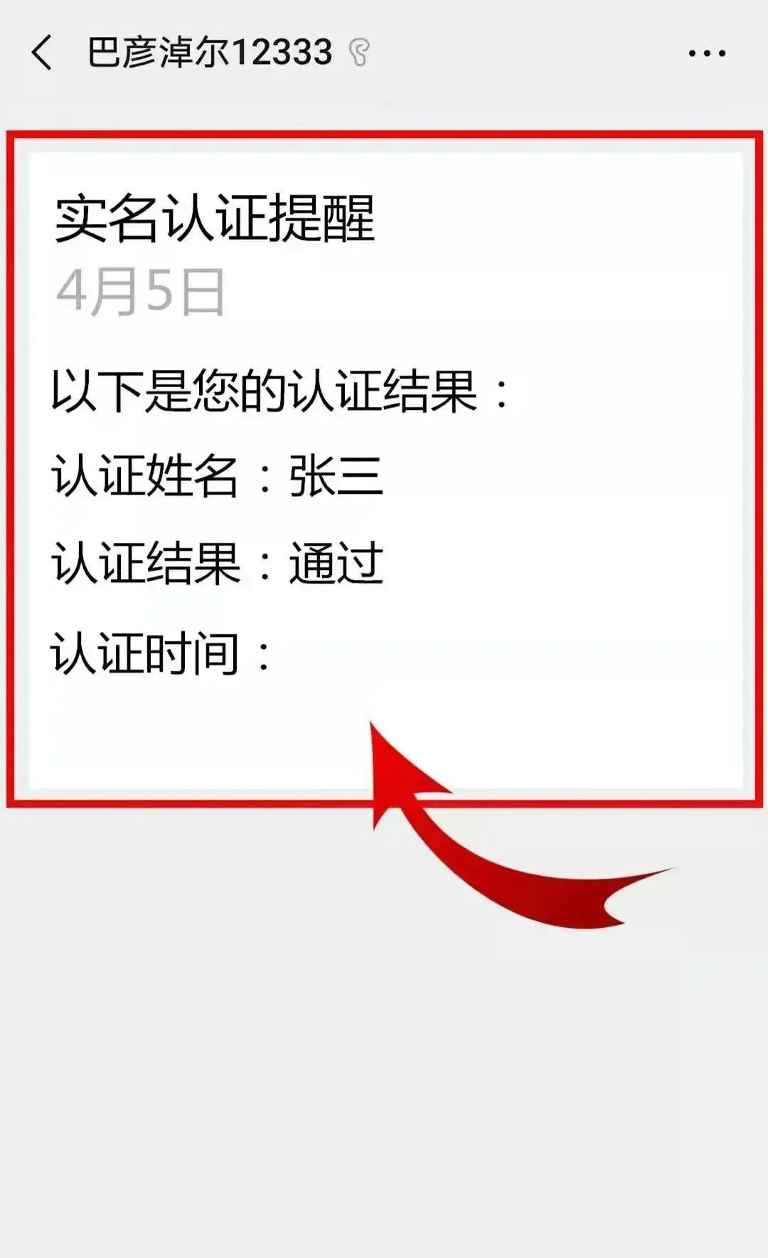 6.未关注“巴彦淖尔12333”,无法收到认证成功信息;