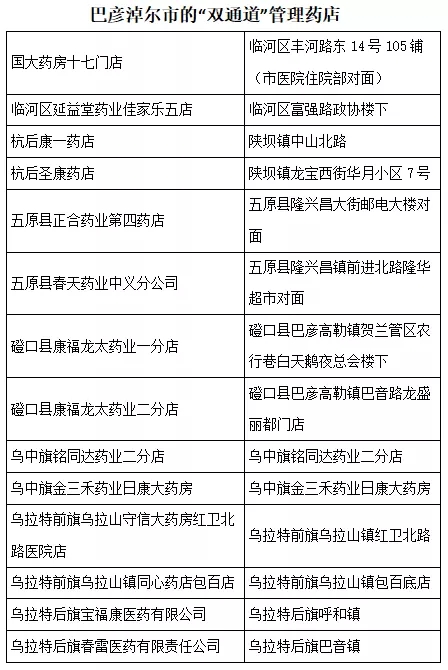 12月13日,记者从巴彦淖尔市医疗保障局获悉,为进一步保障医保谈判药品的落地实施,更好保障重特大疾病患者就医购药,巴彦淖尔市医疗保障局在全市开通14家门诊特殊药品“双通道”管理药店。巴彦淖尔市城镇职工和城乡居民基本医疗保险参保人员,均可在双通道管理的药店购买门诊特殊用药。