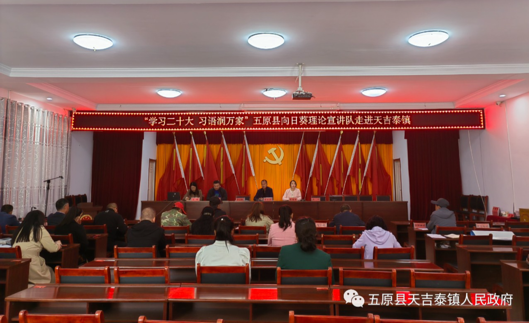 学习二十大,习语润万家。为深入学习宣传贯彻党的二十大精神,切实把党员干部的思想和行动统一到党的二十大精神上来,4月21日,五原县向日葵理论宣讲队走进天吉泰镇,专题宣讲党的二十大精神。天吉泰镇全体干部、各村党支部书记50余人聆听宣讲。